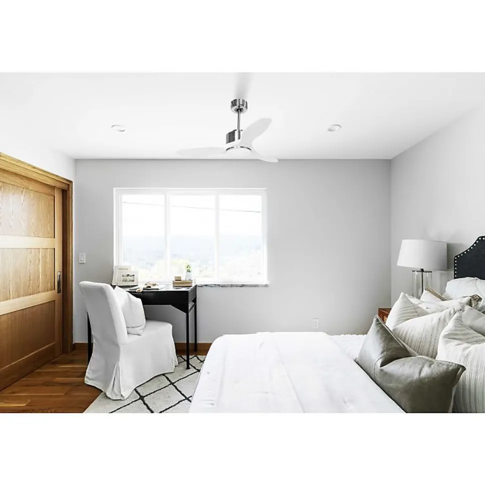 Modulo RegularModulo_DC3_P5Wi106_L1Le Modulo est un ventilateur de plafond modulable et un destratificateur d’air, idéal pour ventiler en été et homogénéiser la chaleur en hiver. Ce régulateur thermique vous aide à réduire votre consommation énergétique, que ce soit pour le chauffage ou la climatisation.Performance et SilenceÉquipé d’un moteur à courant continu (DC) avec roulements à billes auto-lubrifiés, le Modulo assure un contrôle précis de la vitesse, une efficacité énergétique optimale, un fonctionnement silencieux, un entretien minimal et une longue durée de vie. Ce ventilateur Hyper Silence est pratiquement inaudible jusqu’à la vitesse 3, ce qui le rend parfait pour les espaces sensibles au bruit comme les salons, bureaux ou chambres.Options de MontageLe Modulo est livré avec deux tiges de plafond de 12,5 cm et 25 cm, avec des options supplémentaires de 60, 120 et 180 cm. Les pales, disponibles en ABS léger et résistant ou en bois, peuvent être montées en configurations de 2 ou 3 pales selon vos préférences.Caractéristiques TechniquesLe modèle P5, avec un kit lumineux adaptable, est adapté pour des pièces de 15 à 20 m² en mode été et 40 à 60 m² en mode hiver. Il a un diamètre de 106 cm, une puissance de 2450-7240 m³/h, des RPM de 85-245, un niveau sonore de 28-45 dB et une consommation de 3-13 Watts.Fonctionnalités AvancéesChaque ventilateur Modulo est livré avec une télécommande et un récepteur FullFlow, offrant un accès complet aux fonctions : sélection des vitesses, allumage/e