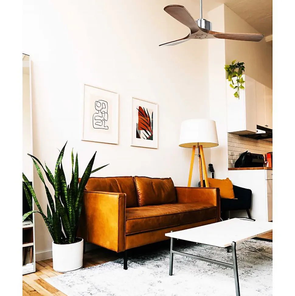 Modulo RegularModulo_DC3_P6clsdDw132Le Modulo est un ventilateur de plafond modulable et un destratificateur d’air, conçu pour offrir un confort thermique optimal toute l’année. En été, il ventile efficacement, tandis qu’en hiver, il homogénéise la chaleur, réduisant ainsi les coûts de chauffage et de climatisation.Technologie et PerformanceÉquipé d’un moteur à courant continu (DC) avec roulements à billes auto-lubrifiés, le Modulo garantit une efficacité énergétique remarquable, un fonctionnement silencieux et une longue durée de vie. Ce moteur DC assure une faible consommation d’énergie et un fonctionnement Hyper Silence, presque inaudible jusqu’à la vitesse 3. Idéal pour les espaces sensibles au bruit comme les salons, bureaux ou chambres.Design et FlexibilitéLe Modulo est livré avec deux tiges de plafond de 12,5 cm et 25 cm, avec des options de prolongateurs de 60, 120 et 180 cm. Les pales, disponibles en ABS léger et résistant ou en bois, peuvent être configurées en 2 ou 3 unités selon vos préférences. Le modèle actuel comprend des pales fermées (P6 – closed blades), adaptées pour des pièces de 25 à 40 m² en été et 60 à 90 m² en hiver.Fonctionnalités AvancéesChaque ventilateur Modulo est livré avec une télécommande et un récepteur FullFlow, permettant de contrôler les vitesses, l’éclairage, la minuterie, le thermostat, le Wi-Fi et le sens de rotation des pales. Le thermostat ajuste automatiquement la vitesse selon la température ambiante, offrant une ventilation optimale et une destratification effica