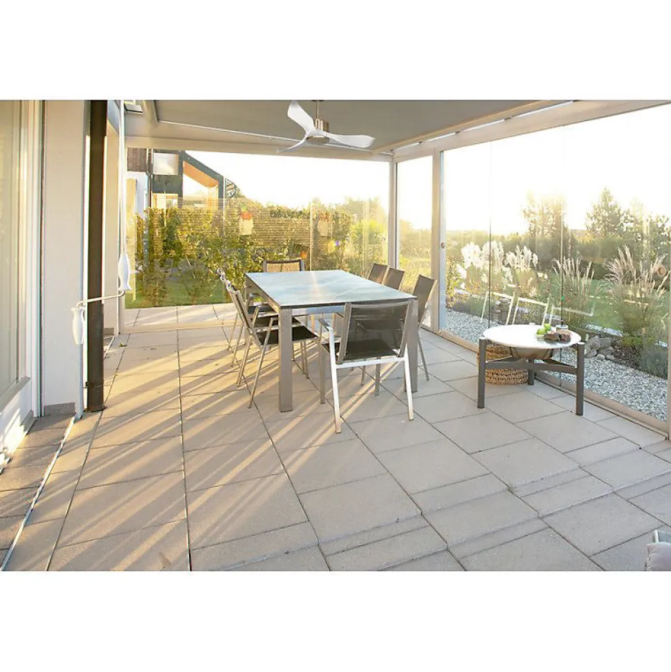 Modulo Regular Exterior IP44Modulo_DC5ext_P1WiDécouvrez le Modulo Regular Exterior, un ventilateur de plafond conçu pour l’extérieur, idéal pour ventiler vos terrasses couvertes durant l’été. Grâce au kit IPX3, il est parfaitement adapté à une installation en extérieur, garantissant une ventilation efficace et durable.CaractéristiquesLe moteur du Modulo est équipé de joints faciles à installer, assurant une protection optimale contre l’humidité et les intempéries. Les pales en résine d’ABS sont résistantes aux variations de température et d’humidité, assurant une performance constante.En option, un kit lumineux étanche est disponible, permettant d’ajouter un éclairage dimmable à votre ventilateur, une fonctionnalité rare pour les ventilateurs d’extérieur.Le Modulo Regular Exterior améliore le confort thermique de vos espaces extérieurs tout en créant une barrière naturelle contre les insectes, rendant vos soirées estivales plus agréables.Performance et EfficacitéÉquipé d’un moteur à courant continu DC avec roulements à billes auto-lubrifiés, le Modulo offre une efficacité énergétique exceptionnelle, un fonctionnement silencieux et une longue durée de vie. Le mode Hyper Silence garantit un fonctionnement presque inaudible jusqu’à la vitesse 3, idéal pour les environnements sensibles au bruit.Le Modulo
