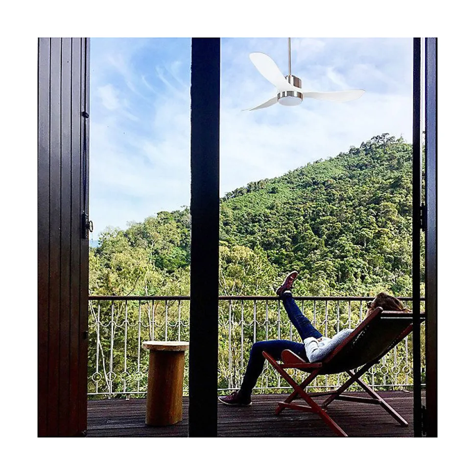 Modulo Regular Exterior IP44Modulo_DC3ext_P3Wi_L1ChextDécouvrez le Modulo Regular Exterior, un ventilateur de plafond modulable conçu pour l’extérieur, idéal pour ventiler vos terrasses couvertes durant l’été. Grâce au kit IPX3, il s’installe facilement à l’extérieur, tout en garantissant une protection optimale contre l’humidité grâce à ses joints d’étanchéité. Les pales en résine ABS sont résistantes aux variations d’humidité et de température, assurant une durabilité exceptionnelle.Éclairage et ConfortEn option, un kit lumineux étanche et dimmable peut être ajouté, offrant un éclairage LED de 18 Watts avec des températures de couleur ajustables (2700K, 4500K, 6000K). Ce ventilateur est un atout pour vos espaces extérieurs, créant une barrière contre les insectes et garantissant des soirées estivales agréables.Performance SilencieuseÉquipé d’un moteur à courant continu DC, le Modulo assure un fonctionnement silencieux et économe en énergie. Les ventilateurs Hyper Silence sont pratiquement inaudibles jusqu’à la vitesse 3, parfaits pour les environnements sensibles au bruit comme les salons ou chambres.Installation et OptionsLe Modulo est livré avec deux tiges de plafond (12,5 cm et 25 cm), avec des options de prolongateurs jusqu’à 18