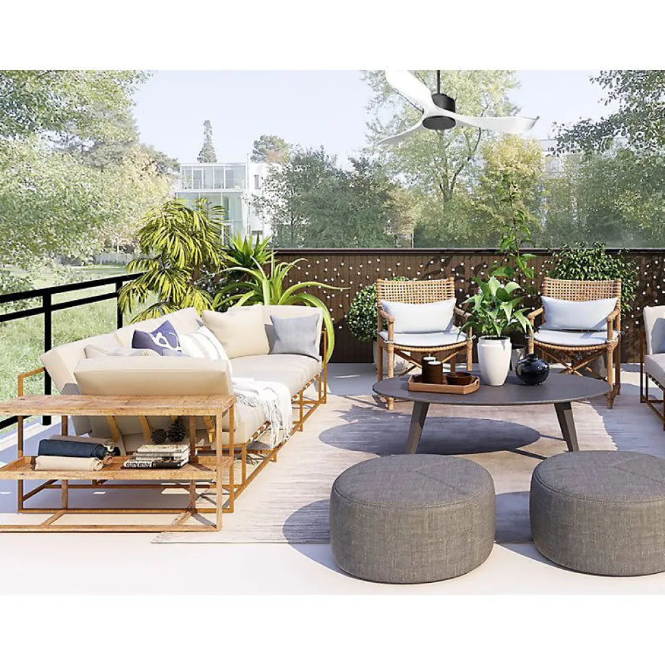 Modulo Regular Exterior IP44Modulo_DC1ext_P2WiDécouvrez le Modulo Regular Exterior, un ventilateur de plafond modulable conçu pour l’extérieur, idéal pour ventiler vos terrasses couvertes durant l’été. Grâce au kit IPX3, il s’installe facilement en extérieur, offrant ainsi une solution de confort thermique pour vos espaces de vie en plein air.CaractéristiquesLe moteur du Modulo Regular est équipé de joints d’étanchéité simples à installer, garantissant une protection optimale contre l’humidité. Les pales en résine d’ABS sont résistantes aux variations d’hygrométrie et de température, assurant une durabilité exceptionnelle.Options et FonctionnalitésEn option, un kit lumineux spécifique permet d’ajouter un point lumineux étanche, rendant le ventilateur encore plus fonctionnel avec une lumière dimmable. Ce modèle est également un excellent répulsif contre les insectes, comme les moustiques, qui ne peuvent pas voler sous un ventilateur en marche.Moteur et PerformanceLe Modulo est doté d’un moteur à courant continu DC avec roulements à billes auto-lubrifiés, offrant une efficacité énergétique, un fonctionnement silencieux et une longue durée de vie. Profitez d’une ventilation Hyper Silence, pratiquement inaudible jusqu’à la vitesse 3.Installation et AccessoiresLe ventilateur est livré avec deux