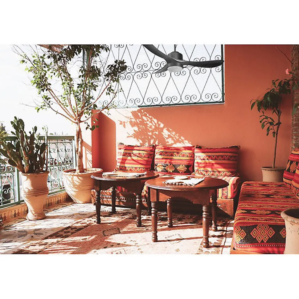 Modulo Regular Exterior IP44Modulo_DC1ext_P3Bk_L1BkextDécouvrez le Modulo Regular Exterior, un ventilateur de plafond modulable spécialement conçu pour l’extérieur. Idéal pour ventiler vos terrasses couvertes en été, ce modèle est équipé d’un kit IPX3 qui permet une installation en extérieur. Le moteur est protégé par une série de joints garantissant son étanchéité, et les pales en résine ABS résistent aux variations d’humidité et de température.CaractéristiquesCe ventilateur est doté d’un kit lumineux étanche en option, offrant une lumière dimmable, un atout rare pour les ventilateurs d’extérieur. Le Modulo Regular Exterior assure un confort optimal en régulant la température de vos espaces extérieurs tout en éloignant les insectes indésirables tels que les moustiques.Les moteurs Modulo sont équipés de moteurs à courant continu DC avec roulements à billes auto-lubrifiés, offrant une efficacité énergétique, un fonctionnement silencieux et une longue durée de vie. Le mode Hyper Silence garantit un fonctionnement presque inaudible jusqu’à la vitesse 3, idéal pour les espaces sensibles au bruit.Le Modulo est livré avec deux tiges de plafond de 12,5 cm et 25 cm, avec des options de prolongateurs de 60, 120 et 180 cm. Les pales sont disponibles en ABS léger et résistant, et vous pouvez choisir d’installer 2 ou 3 pales selon vos préfére