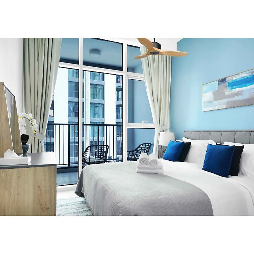 Modulo Regular RingModulo_DC1_P5Sw106_RingBkLe Modulo est un ventilateur de plafond modulable et un destratificateur d’air, idéal pour ventiler en été et optimiser la chaleur en hiver. En tant que régulateur thermique, il vous aide à réduire vos dépenses énergétiques en chauffage et climatisation.Caractéristiques du MoteurÉquipé d’un moteur à courant continu DC avec roulements à billes auto-lubrifiés, le Modulo garantit un contrôle précis de la vitesse, une efficacité énergétique accrue, un fonctionnement silencieux, un entretien minimal et une longue durée de vie. Ce moteur DC est également reconnu pour son fonctionnement Hyper Silence, pratiquement inaudible jusqu’à la vitesse 3, parfait pour les espaces sensibles au bruit comme les salons, bureaux ou chambres.Installation et OptionsLe Modulo est livré avec deux tiges de plafond de 12,5 cm et 25 cm, avec des options de prolongateurs de 60, 120 et 180 cm disponibles. Les pales, en ABS léger et résistant ou en bois, sont configurables en 2 ou 3 unités selon vos préférences.Performance et UtilisationAvec un diamètre de 106 cm, le Modulo est conçu pour des pièces de 15 à 20 m² en mode été et de 40 à 60 m² en mode hiver. Il offre une puissance de 2450-7240 m³/h, une vitesse de rotation de 85-245 RPM, un niveau sonore de 28-45 dB et une consommation de 3-13 Watts.Fonctionnalités AvancéesChaque ventilateur Modulo est livré avec une télécommande et un récepteur FullFlow, permettant de contrôler les vitesses, l’éclairage, la minuterie, le thermostat, le