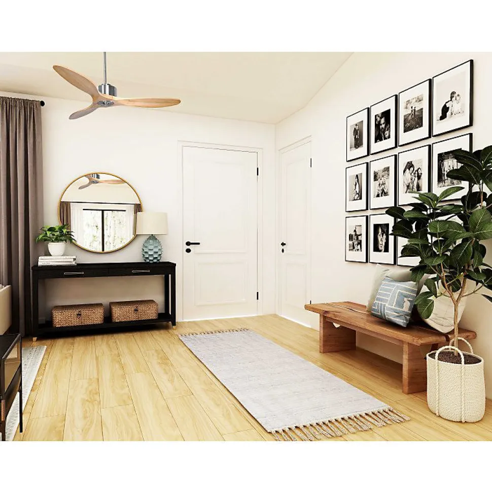 Modulo Regular RingModulo_DC3_P5Sw132_RingChLe Modulo est un ventilateur de plafond modulable et un destratificateur d’air, idéal pour ventiler en été et homogénéiser la chaleur en hiver. Ce régulateur thermique vous aide à réduire votre consommation d’énergie, que ce soit pour le chauffage ou la climatisation.Caractéristiques du MoteurÉquipé d’un moteur à courant continu DC avec roulements à billes auto-lubrifiés, le Modulo assure un contrôle précis de la vitesse, une efficacité énergétique optimale, un fonctionnement silencieux, un entretien minimal et une longue durée de vie.Le moteur DC du Modulo est conçu pour une consommation d’énergie réduite et un fonctionnement Hyper Silence, garantissant un silence presque total jusqu’à la vitesse 3. Idéal pour les espaces sensibles au bruit comme les salons, bureaux ou chambres.Installation et OptionsLe Modulo est livré avec deux tiges de plafond de 12,5 cm et 25 cm, avec des options supplémentaires de tiges de 60, 120 et 180 cm. Les pales sont disponibles en ABS léger et résistant ou en bois, et vous pouvez choisir de monter 2 ou 3 pales selon vos préférences.Performance et UtilisationLa configuration actuelle inclut un jeu de pales P5, adapté pour des pièces de 25 à 40 m² en été et 60 à 90 m² en hiver. Le ventilateur a un diamètre de 132 cm, une puissance de 3450-12480 m³/h, une vitesse de rotation de 70-210 RPM, un niveau sonore de 28-45 dB et une consommation de 3-13 Watts.Fonctionnalités AvancéesChaque ventilateur Modulo est livré