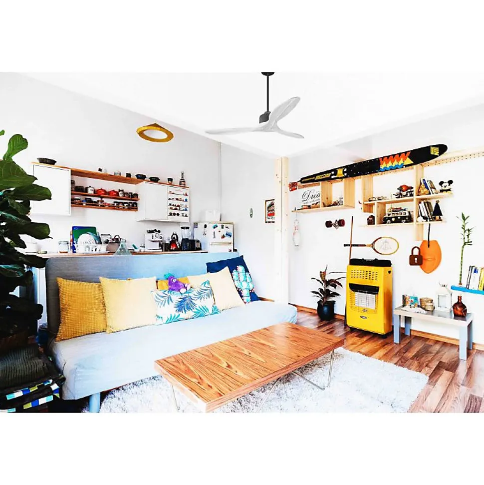Modulo garantie 10 ans.Modulo Slim DC1_P5ClsdWi132Découvrez le Modulo Slim, le modèle compact du célèbre Modulo Regular. Ce ventilateur de plafond allie discrétion et performance, avec un design plus fin tout en conservant les mêmes caractéristiques techniques avancées.FonctionnalitésLe Modulo Slim ne se contente pas d’être un simple ventilateur de plafond. Il agit également comme un déstratificateur d’air, garantissant une circulation d’air optimale grâce à son moteur DC. Ce moteur assure un fonctionnement ultra silencieux, idéal pour les environnements nécessitant un calme absolu comme les salons, bureaux ou chambres.Performance et EfficacitéLe moteur DC du Modulo Slim offre une efficacité énergétique remarquable, combinant contrôle précis de la vitesse, longévité et silence. Jusqu’à la vitesse 3, le ventilateur est pratiquement inaudible, et même à des vitesses plus élevées, seul le doux mouvement de l’air se fait entendre.Installation et PersonnalisationLe Modulo Slim est livré avec deux tiges de plafond de 12,5 cm et 25 cm, avec des options de prolongateurs de 60, 120 et 180 cm disponibles. Les pales, disponibles en ABS résistant ou en bois, peuvent être configurées en 2 ou 3 unités selon vos préférences. La version actuelle inclut des pales fermées (P5 – closed blades), adaptées pou