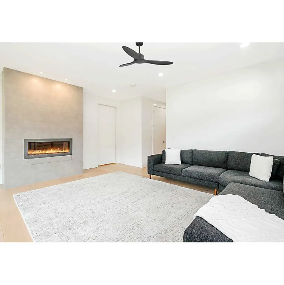 Modulo garantie 10 ans.Modulo Slim DC1_P5ClsdBk132Le Modulo Slim, version affinée du Modulo Regular, se distingue par son design épuré tout en conservant les mêmes performances techniques. Ce ventilateur de plafond est également un déstratificateur d’air, combinant efficacité et silence absolu grâce à son moteur DC.CaractéristiquesLe moteur DC du Modulo Slim assure un contrôle précis de la vitesse, un fonctionnement silencieux, une longue durée de vie et une efficacité énergétique remarquable. Il est idéal pour les espaces sensibles au bruit comme les salons, bureaux ou chambres, étant pratiquement inaudible jusqu’à la vitesse 3.Le Modulo Slim est livré avec deux tiges de plafond de 12,5 cm et 25 cm. Des options de tiges de 60, 120 et 180 cm sont également disponibles. Les pales peuvent être en ABS ou en bois, et vous avez la possibilité de monter 2 ou 3 pales selon vos préférences. Le modèle P5 avec pales fermées convient aux pièces de 25 à 40 m² en été et de 60 à 90 m² en hiver.Spécifications Techniques Taille : 132 cm Matériau : Bois Puissance : 3450-12480 m³/h RPM : 70-210 Niveau sonore : 28-45 dB Consommation : 3-21 WattsChaque ventilateur de la série Modulo est équipé d’une télécommande et d’un récepteur FullFlow, offrant un accès complet aux fonctions telles que la sélection des vitesses, l’allumage/extinction, la minuterie, le ther