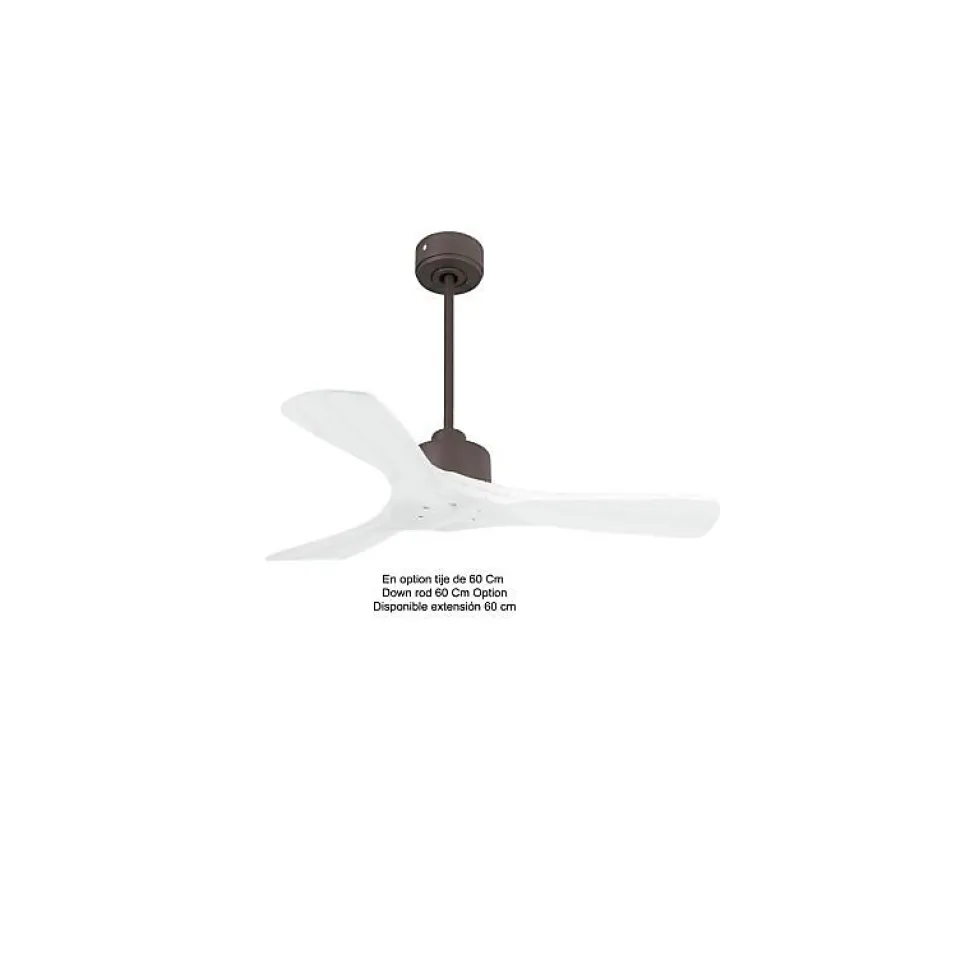 Modulo garantie 10 ans.Modulo Slim DC6_P6ClsdWi106Le Modulo Slim, version affinée du Modulo Regular, conserve les mêmes performances techniques avec un moteur identique, tout en offrant un design plus discret et élégant.Ce ventilateur de plafond est également un déstratificateur d’air, équipé d’un moteur DC qui assure une efficacité énergétique remarquable et un fonctionnement ultra silencieux. Idéal pour les espaces où le silence est d’or, comme les salons, bureaux ou chambres.CaractéristiquesLe Modulo Slim est fourni avec deux tiges de plafond de 12,5 cm et 25 cm, avec des options de prolongateurs de 60, 120 et 180 cm. Les jeux de pales, disponibles en ABS léger et résistant ou en bois, se composent de 3 pales, mais vous pouvez choisir d’en installer 2 ou 3 selon vos préférences.La configuration actuelle inclut des pales fermées (P6 – closed blades), adaptées pour des pièces de 15 à 20 m² en mode été et de 40 à 60 m² en mode hiver. Avec un diamètre de 106 cm, ce ventilateur en bois offre une puissance de 2450-7240 m³/h, des rotations par minute (RPM) de 85-245, un niveau sonore de 28-45 dB et une consommation de 3-13 watts.Chaque ventilateur de la série Modulo est livré avec une télécommande et un récepteur FullFlow, permettant de contrôler les vitesses, l’allumage/extinction, la minuterie, le thermostat,