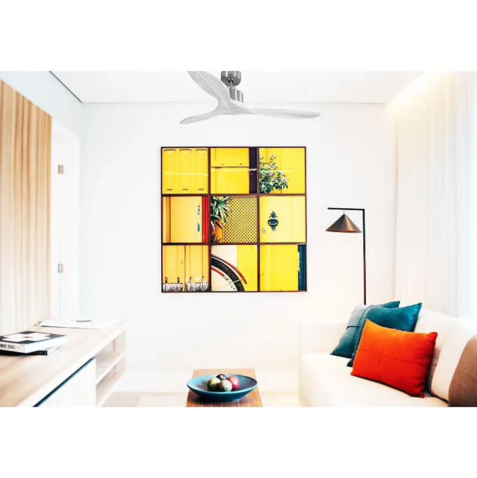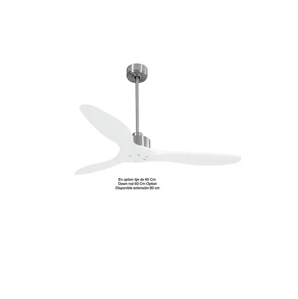 Modulo garantie 10 ans.Modulo Slim DC3_P5ClsdWi132Découvrez le Modulo Slim, une version élégante et discrète du Modulo Regular, offrant les mêmes performances exceptionnelles grâce à son moteur identique. Ce ventilateur de plafond est également un déstratificateur d’air, combinant efficacité énergétique et silence absolu pour un confort optimal.CaractéristiquesLe moteur DC du Modulo Slim assure un contrôle précis de la vitesse, un fonctionnement silencieux, une longue durée de vie et une efficacité énergétique remarquable. Ce ventilateur est idéal pour les espaces où le silence est primordial, comme les salons, bureaux et chambres, étant pratiquement inaudible jusqu’à la vitesse 3.Le Modulo Slim est livré avec deux tiges de plafond de 12,5 cm et 25 cm, avec des options de prolongateurs de 60, 120 et 180 cm. Les pales, disponibles en ABS léger et résistant ou en bois, peuvent être configurées en 2 ou 3 pales selon vos préférences. La version actuelle inclut des pales fermées (P5 – closed blades), adaptées pour des pièces de 25 à 40 m² en été et de 60 à 90 m² en hiver.Avec un diamètre de 132 cm, ce ventilateur en bois offre une puissance de 3450-12480 m³/h, une vitesse de rotation de 70-210 RPM, un niveau sonore de 28-45 dB et une consommation de 3-21 Watts.FonctionnalitésChaque ventilateur de la série Modulo est équipé d’une télécommande et d’un récepteur FullFlow, permettant de contrôler les vitesses, l’allumage/extinction, la minuterie, le thermostat, le Wi-Fi