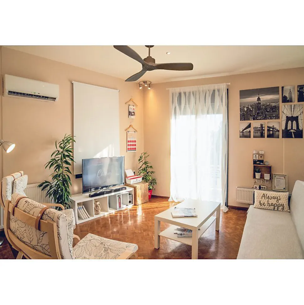 Modulo garantie 10 ans.Modulo Slim DC2_P6ClsdDw132Le Modulo Slim, version affinée du Modulo Regular, offre les mêmes performances techniques avec un design plus discret. Ce ventilateur de plafond est également un déstratificateur d’air, combinant efficacité et silence absolu grâce à son moteur DC (courant continu).CaractéristiquesLe moteur DC du Modulo Slim assure un contrôle précis de la vitesse, un fonctionnement silencieux, une longue durée de vie et une efficacité énergétique remarquable. Il est idéal pour les espaces sensibles au bruit tels que les salons, bureaux ou chambres, étant pratiquement inaudible jusqu’à la vitesse 3.Le Modulo Slim est livré avec deux tiges de plafond de 12,5 cm et 25 cm, avec des options supplémentaires de 60, 120 et 180 cm. Les pales, disponibles en ABS léger et résistant ou en bois, peuvent être configurées en 2 ou 3 pales selon vos préférences. La version actuelle inclut des pales fermées (closed blades), adaptées pour des pièces de 25 à 40 m² en été et 60 à 90 m² en hiver.Avec un diamètre de 132 cm, le Modulo Slim offre une puissance de 3850-12990 m³/h, une vitesse de rotation de 70-210 RPM, un niveau sonore de 28-45 dB et une consommation de 3-21 Watts.FonctionnalitésChaque ventilateur de la série Modulo est équipé d’une télécommande et d’un récepteur FullFlow, permettant de contrôler les vitesses, l’allumage/extinction, la minuterie, le thermostat, le Wi-Fi et le sens de rotation des pales. Le thermostat ajuste automatiqueme
