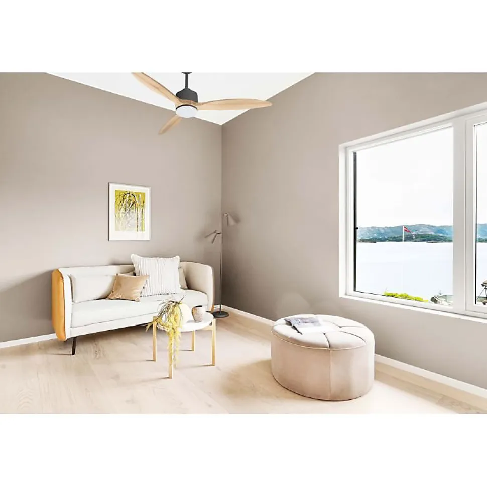 Modulo SlimDC1S_P8Sw132_L1sLe Modulo Slim est un ventilateur de plafond modulable et un destratificateur d’air, conçu pour offrir une ventilation efficace en été et une récupération de chaleur en hiver. Ce produit polyvalent se distingue par son design moderne et ses fonctionnalités avancées, permettant de réaliser des économies sur les coûts de chauffage et de climatisation.Technologie et PerformanceÉquipé d’un moteur à courant continu (DC) fabriqué à 100 % en cuivre avec des roulements à billes auto-lubrifiés, le Modulo Slim assure un fonctionnement silencieux et sans encombre. Ce moteur permet un contrôle précis de la vitesse avec six niveaux ajustables, tout en garantissant une faible consommation d’énergie. Les ventilateurs de plafond Hyper Silence, dont fait partie le Modulo Slim, sont pratiquement inaudibles jusqu’à la vitesse 3.Installation et OptionsLe Modulo Slim est livré avec deux tiges de plafond de 12,5 cm et 25 cm, avec des options supplémentaires de 60, 120 et 180 cm disponibles. Les pales, en ABS léger et résistant ou en bois, sont disponibles en jeux de trois, et peuvent être montées en configuration de deux ou trois pales selon vos préférences.Capacités et DimensionsCe modèle est idéal pour des pièces de 25 à 40 m² en mode été et de 60 à 90 m² en mode hiver. Avec un diamètre de 132 cm, i