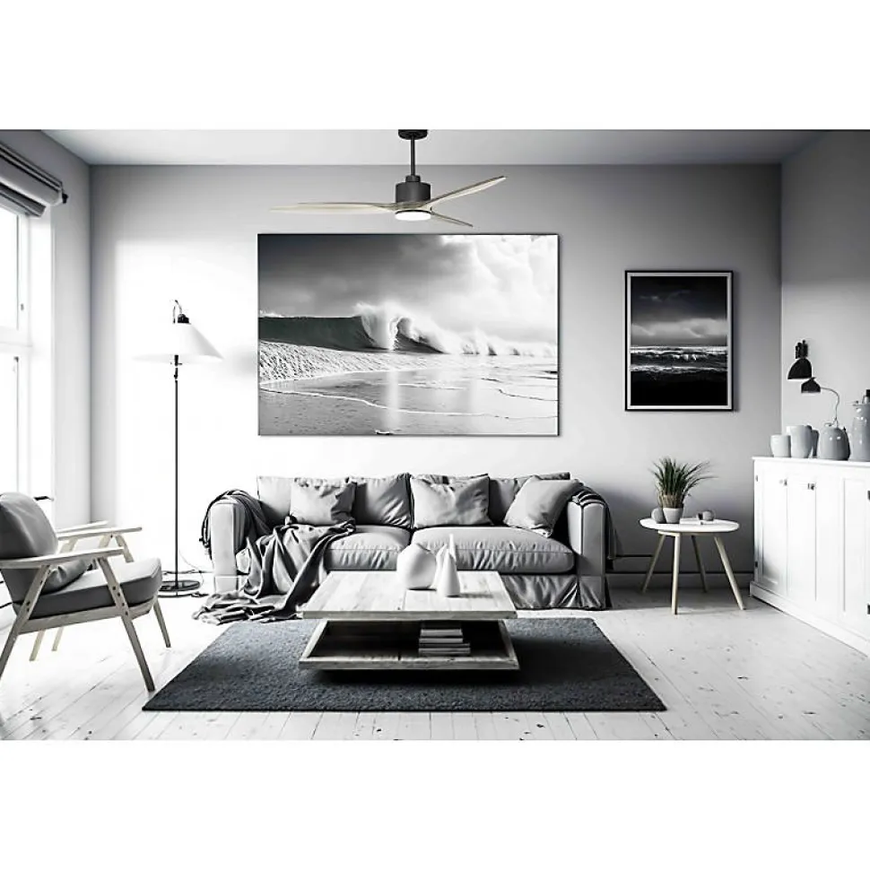 Modulo SlimDC1S_P8Gr132_L1sLe Modulo Slim est un ventilateur de plafond modulable qui fait également office de destratificateur d’air. Il assure une ventilation efficace en été et optimise la récupération de chaleur en hiver. Ce modèle polyvalent se distingue par son design moderne et ses fonctionnalités avancées.Bien plus qu’un simple ventilateur, le Modulo Slim est un régulateur thermique qui vous aide à réduire vos dépenses énergétiques en chauffage et climatisation.Technologie et PerformanceÉquipé d’un moteur à courant continu (DC) en cuivre à 100 % avec des roulements à billes auto-lubrifiés, ce ventilateur garantit un fonctionnement silencieux et fiable. Le moteur DC permet un contrôle précis de la vitesse avec 6 niveaux disponibles, tout en offrant une consommation énergétique réduite et un fonctionnement Hyper Silence. Jusqu’à la vitesse 3, le ventilateur est pratiquement inaudible, et seules les vitesses supérieures peuvent produire un léger bruit d’air.Installation et OptionsLe Modulo Slim est fourni avec deux tiges de plafond de 12,5 cm et 25 cm, avec des options supplémentaires de 60, 120 et 180 cm. Les pales, disponibles en ABS léger et résistant ou en bois, peuvent être configurées en 2 ou 3 unités selon vos préférences.La configuration P8 est idéale pour des pièces de 25 à 40 m² en mode été et