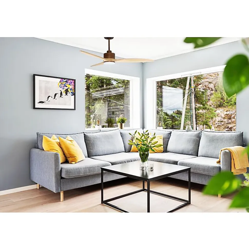 Modulo SlimDC2S_P8Sw132_L1sLe Modulo Slim est un ventilateur de plafond innovant et modulable, conçu pour offrir une ventilation efficace en été et une récupération de chaleur en hiver. Ce destratificateur d’air moderne se distingue par sa polyvalence et son design contemporain, faisant de lui un allié indispensable pour optimiser votre consommation énergétique.Fonctionnalités AvancéesBien plus qu’un simple ventilateur, le Modulo Slim agit comme un régulateur thermique, permettant des économies significatives sur vos factures de chauffage et de climatisation. Équipé d’un moteur à courant continu (DC) 100 % cuivre avec roulements à billes auto-lubrifiés, il garantit un fonctionnement silencieux et sans encombre. Ce moteur DC offre un contrôle précis de la vitesse avec 6 niveaux, tout en étant économe en énergie et Hyper Silence, pratiquement inaudible jusqu’à la vitesse 3.Installation et OptionsLe Modulo Slim est fourni avec deux tiges de plafond de 12,5 cm et 25 cm, avec des options supplémentaires de tiges de 60, 120 et 180 cm. Les pales, disponibles en ABS léger et résistant ou en bois, peuvent être montées en configurations de 2 ou 3 pales selon vos préférences. Le modèle P8 est idéal pour des pièces de 25 à 40 m² en été et 60 à 90 m² en hiver.Caractéristiques Techniques Surface de portée : 60 à 90 m² en hiver, 25 à 35 m² en été Sys