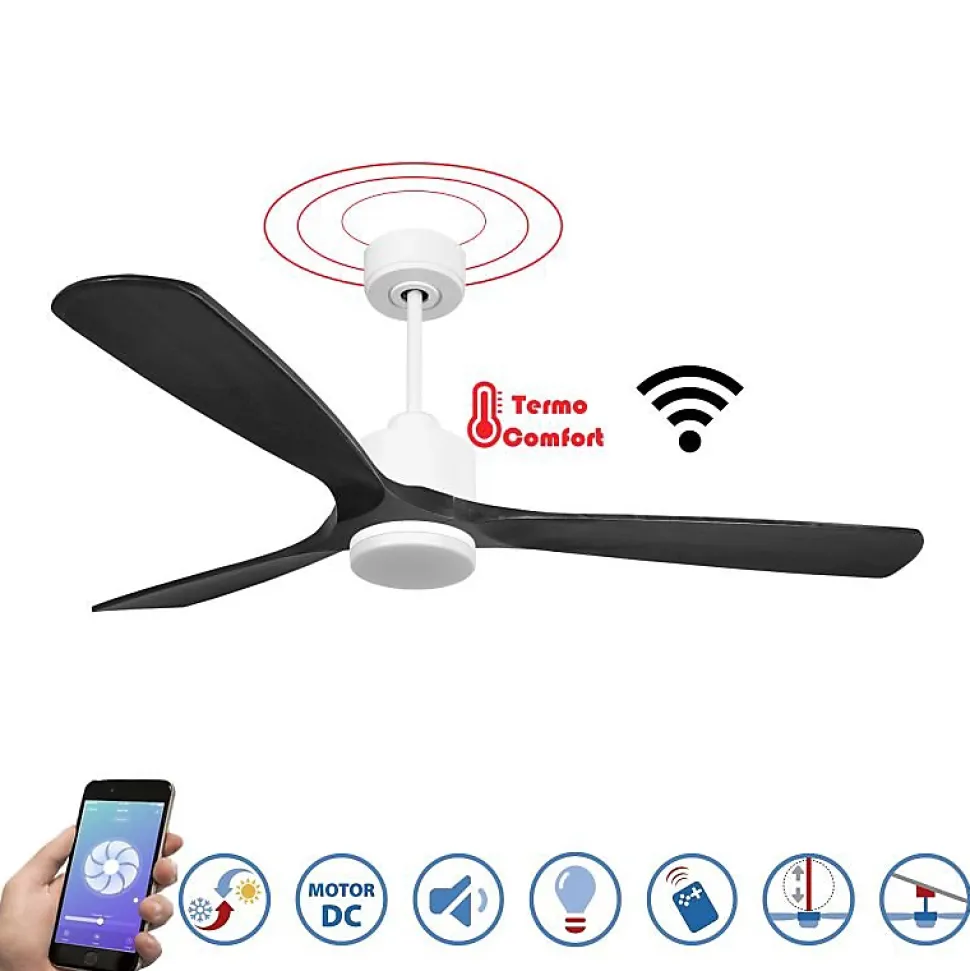 Modulo SlimDC4Slim_P6Bk166_L1SlimLe Modulo Slim est un ventilateur de plafond modulable et un destratificateur d’air, conçu pour offrir une ventilation efficace en été et récupérer la chaleur en hiver. Ce produit polyvalent se distingue par son design moderne et ses fonctionnalités avancées, permettant de réaliser des économies d’énergie sur le chauffage et la climatisation.Technologie et PerformanceÉquipé d’un moteur à courant continu (DC) 100 % cuivre avec roulements à billes auto-lubrifiés, le Modulo Slim assure un fonctionnement silencieux et fiable. Ce moteur DC permet un contrôle précis de la vitesse grâce à ses 6 paliers, tout en garantissant une faible consommation d’énergie. Les ventilateurs de plafond Hyper Silence, comme le Modulo Slim, sont pratiquement inaudibles jusqu’à la vitesse 3, et seul le mouvement de l’air est perceptible à des vitesses plus élevées.Installation et OptionsLe Modulo Slim est livré avec deux tiges de plafond de 12,5 cm et 25 cm, avec des options supplémentaires de 60, 120 et 180 cm. Les pales, disponibles en ABS léger et résistant ou en bois, peuvent être montées en configurations de 2 ou 3 pales selon vos préférences. La combinaison actuelle, le type P6, est idéale pour des pièces de 30 à 60 m² en été et de 90 à 120 m² en hiver.Caractéristiques Techniques Surface de portée : Hiver (destratificateur) 60 à 120 m², Été 30 à
