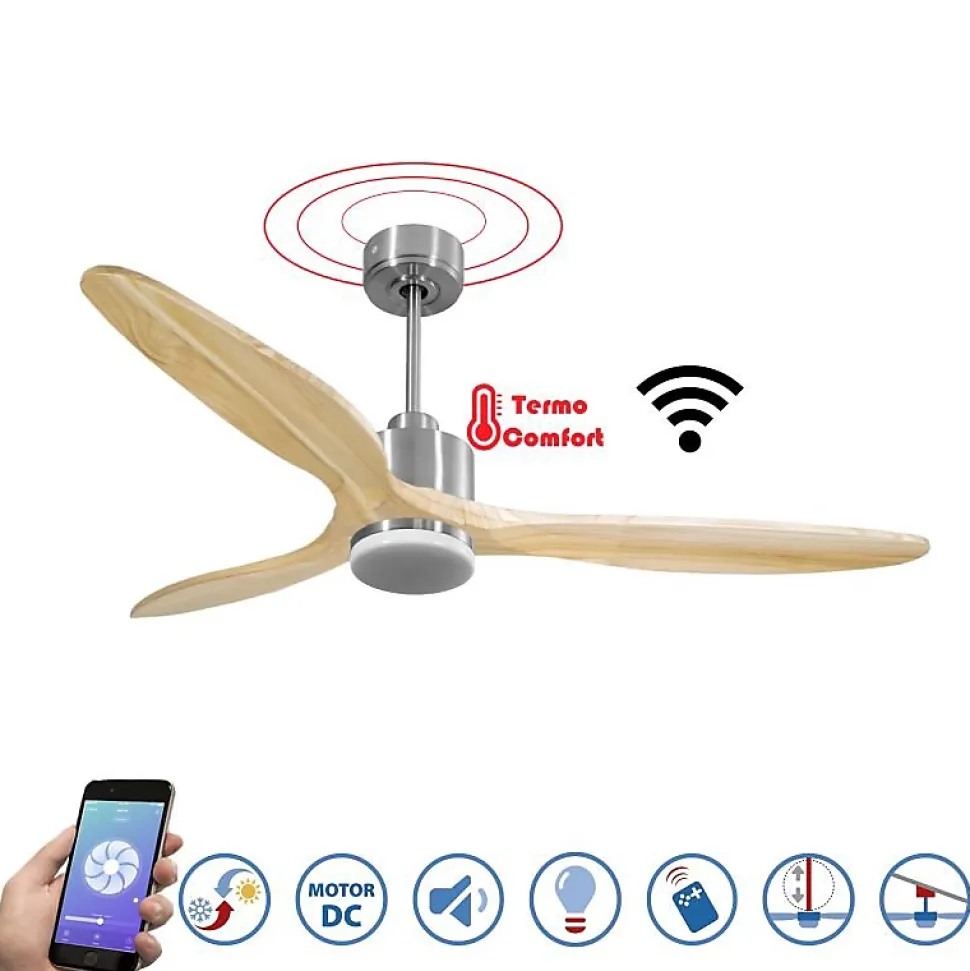 Modulo SlimDC3Slim_P5Sw166_L1slimLe Modulo Slim est bien plus qu’un simple ventilateur de plafond. En tant que destratificateur d’air, il assure une ventilation efficace en été et optimise la récupération de chaleur en hiver. Ce modèle polyvalent se distingue par son design moderne et ses fonctionnalités avancées, vous permettant de réaliser des économies sur vos coûts de chauffage et de climatisation.Performance Silencieuse et ÉconomiqueÉquipé d’un moteur à courant continu (DC) fabriqué entièrement en cuivre, le Modulo Slim garantit un fonctionnement silencieux et sans souci grâce à ses roulements à billes auto-lubrifiés. Avec 6 vitesses disponibles, ce moteur permet un contrôle précis de la ventilation tout en offrant une faible consommation d’énergie. Les ventilateurs de plafond Hyper Silence sont pratiquement inaudibles jusqu’à la vitesse 3, ne laissant entendre que le mouvement de l’air aux vitesses supérieures.Options de Montage et PersonnalisationLe Modulo Slim est livré avec deux tiges de plafond de 12,5 cm et 25 cm, avec des options supplémentaires de 60, 120 et 180 cm. Les pales, disponibles en ABS léger et résistant ou en bois, peuvent être montées en configurations de 2 ou 3 pales selon vos préférences. Le modèle P5 est idéal pour des pièces de 30 à 60 m² en été et de 90 à 120 m² en hiver.Caractéristiques Techniques Surface de portée : 60 à 120 m
