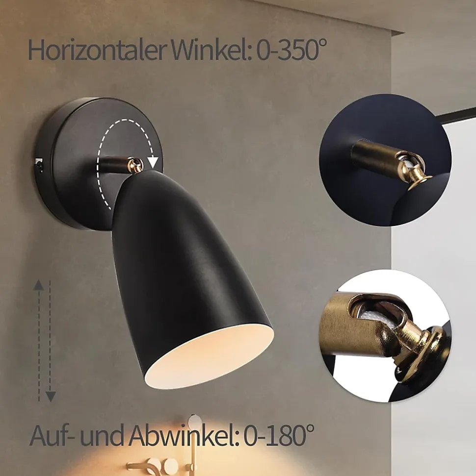 Angle réglable et flexible : l’applique murale peut pivoter à 180° et permet d’orienter la lumière de manière ciblée – idéale pour la cuisine, la chambre, le couloir et la cage d’escalier.CONCEPTION DURABLE : Fabriqué en fer de haute qualité pour plus de stabilité et de durabilité, avec une durée de vie allant jusqu’à 20 000 heures pour un éclairage fiable dans tous les espaces intérieursDesign mat simple : en noir ou blanc mat, l’applique murale s’intègre parfaitement dans les espaces de vie modernes et donne à la pièce une touche éléganteCompatible avec les lampes GU10 : Convient aux douilles GU10 (sans ampoule), maximum 40 W pour créer différentes ambiances lumineuses – de l’ambiance chaleureuse dans la chambre à l’éclairage clair dans le couloirInstallation facile : l’applique murale est livrée avec un kit de montage complet, ce qui rend l’installation rapide et facile – idéale pour des zones telles que la cuisine ou les escaliers