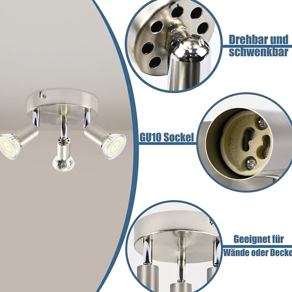 【Plafonnier moderne】 Le plafonnier LED orientable est fabriqué en métal de haute qualité et se présente dans un élégant noir mat. Le design simple s’intègre parfaitement dans n’importe quel espace de vie et protège la surface de la lampe de l’humidité et de la rouille.【Rotatif et pivotant】 Le plafonnier industriel moderne peut être pivoté à 350° et incliné à 90° de haut en bas, de sorte que la direction et l’angle de la lumière puissent être facilement ajustés en tournant simplement la tête de la lampe. Le design rond de la base laisse suffisamment d’espace entre la base et le plafond pour cacher le câble d’alimentation. Cela améliore considérablement l’esthétique et la praticité de la lampe.【Applique murale et plafonnier en un】 Chaque tête d’éclairage du spot de plafond à 3 ampoules peut être tournée pour que vous puissiez éclairer où vous le souhaitez. La base ronde s’adapte à la plupart des murs et plafonds, elle peut donc être utilisée non seulement comme plafonnier mais également comme applique murale, offrant une liberté d’installation.Large application : le plafonnier d’intérieur noir a une apparence simple et élégante, la tête de lampe rotative peut créer une atmosphère chaleureuse et romantique à tout moment. Convient pour la cuisine, le salon, la chambre, le couloir, le bureau et d’autres pièces.【Douille GU10】 Le spot de plafond rond à 3 ampoules convient à toutes les ampoules GU10, telles que le blanc chaud, le blanc froid, RVB et à intensité variable. Vous pouvez choisir différentes ampoules en fonction de vos préférences en matière de lumière et de style. Attention : Notre plafonnier de salon est livré sans ampoule. La puissance maximale des ampoules est de 25 W.