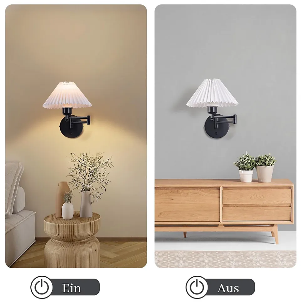 Abat-jour en tissu élégant : Fabriqué en tissu, il adoucit la lumière, crée une atmosphère chaleureuse et ajoute à la beauté de votre maisonPoteau de lampe en métal rotatif : matériau métallique robuste, conception de rotation à 180 degrés à deux nœuds, réglage flexible de la direction de l’éclairage.Compatibilité de plusieurs sources de lumière : la tête de lampe E27 est compatible avec une variété d’ampoules et permet de basculer librement entre la lumière froide, la lumière neutre et la lumière chaude.Installation facile : facile à installer, s’adapte à différentes scènes de maison et améliore le goût de la pièceLarge applicabilité : convient au lit, à la chambre, au salon, au couloir, etc. pour répondre à différents besoins d’éclairage