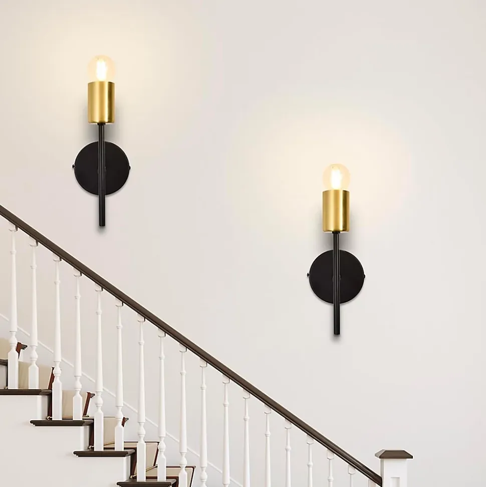 Combinaison bicolore : La combinaison de l’or et du noir donne à cette applique rétro E27 un look moderne et classique. L’éclat de l’or et la profondeur du noir contrastent clairement, ce qui augmente l’attrait visuel et donne à la pièce une atmosphère élégante et améliore l’effet décoratif global.Matériau métallique : l’applique murale rétro est fabriquée dans un matériau métallique de haute qualité, soigneusement conçu, stable, résistant à la corrosion, à la rouille et à l’usure. Leur conception simple s’adapte à différents styles d’intérieur et augmente la dimension spatialeDouille E27 : L’applique murale industrielle utilise une douille E27 standard. Il est compatible avec différents types de lampes, notamment les lampes à LED, à incandescence et à économie d’énergie, vous permettant de choisir différents types de lampes en fonction de vos besoins. La puissance maximale est de 40W (hors ampoule)Applicabilité environnementale : cette applique murale convient à divers environnements tels que les chambres, les escaliers, les greniers, les salons, les balcons, les bars, les cuisines, les couloirs, les galeries, les restaurants ou les cafés. Il s’intègre parfaitement dans différents styles de décoration (comme le style industriel, country ou rétro) et donne à la pièce un charme uniqueInstallation facile : le processus d’installation de cette applique murale est relativement simple. Le forfait comprend des accessoires d’installation et des instructions. Vous pouvez facilement installer la lampe au plafond ou au mur en suivant les instructions