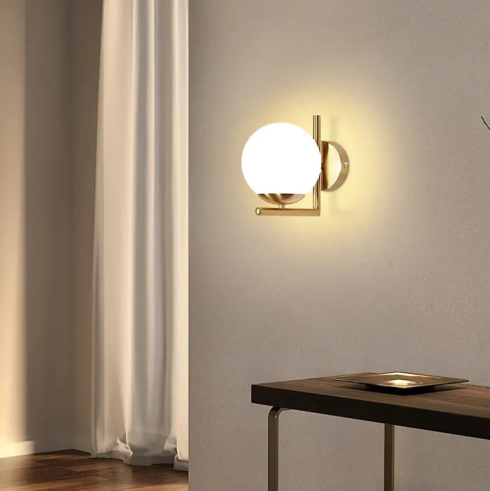 Design : Cette applique murale impressionne par la combinaison d’un abat-jour en verre blanc laiteux et d’un métal brillant. Ce n’est pas seulement un appareil d’éclairage fonctionnel et pratique, mais aussi une décoration intérieure sophistiquée. Qu’il s’agisse d’une maison de style vintage ou moderne, cette applique murale s’intégrera sans effort dans n’importe quelle ambiance.Plusieurs sources lumineuses disponibles : Cette applique pour le salon dispose d’une douille E27 qui s’adapte parfaitement à différents styles de maison. Selon vos préférences et besoins personnels, vous pouvez choisir différentes températures de couleur pour créer l’ambiance lumineuse idéale dans la pièce (sans sources lumineuses).Détails : Cette lampe de couloir est équipée d’une douille E27 qui supporte une puissance maximale de 40W. Avec des dimensions de 22*20*15 cm, il est idéal pour l’éclairage décoratif car il ne prend pas trop de place et diffuse une lumière chaude et uniforme qui crée une atmosphère chaleureuse et calme.Installation facile : Cet éclairage est facile à installer. Vous pouvez choisir la meilleure position d’installation en fonction de vos besoins et préférences personnels. Le processus d’installation est pratique : il suffit de placer l’applique murale dans la douille, puis de la visser fermement.Scènes applicables : cette applique murale d’intérieur convient non seulement comme lampe de chevet pour fournir une source de lumière confortable pour lire et se détendre, mais peut également être utilisée dans diverses pièces telles que le salon, le bureau, le couloir, etc. De plus, leur conception simple en fait également un choix idéal pour les lieux publics tels que les hôtels et les cafés.