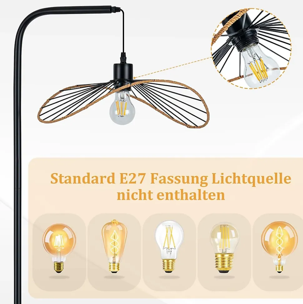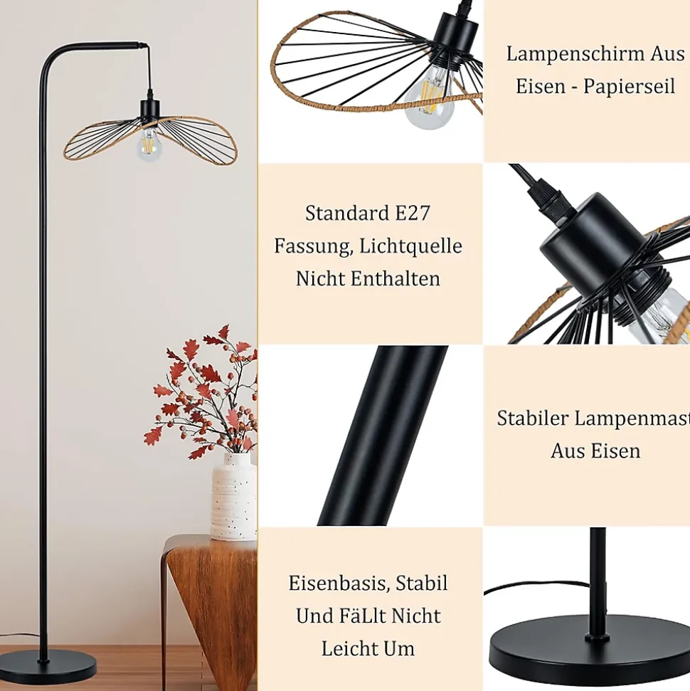 Design Vintage et Charmant : Ce lampadaire industriel Nettlife a une forme de papillon unique. Le corps noir est orné de cordes en papier jaune sur l’anneau extérieur. Il combine minimalisme et style vintage, ajoutant un charme artistique à la pièce.Concept d’Utilisation Pratique : Équipé d’un interrupteur à pied facile à utiliser. La hauteur de l’abat-jour peut être légèrement ajustée via un écrou pour répondre aux différents angles d’éclairage. Douille E27 (sans ampoule), supporte max. 40 W.Gain de Place et Lumière Douce : La structure en forme de L au sol prend peu de place. La conception démontable facilite l’installation et le rangement. Avec un long câble de 220 cm, cette lampe à arc offre une lumière douce et s’adapte à divers agencements.Garantie de Stabilité et Sécurité : La base lourde empêche efficacement le basculement, rendant l’utilisation plus sûre. Le corps en métal rétro et le câble isolé en PVC épais sont durables et garantissent une sécurité électrique.Polyvalent : Que ce soit pour une ambiance cosy dans la chambre, un charme artistique dans le salon ou une atmosphère chaleureuse dans la salle à manger, ce lampadaire Nettlife maîtrise tout. Idéal pour les chambres, salons, bureaux et maisons d’hôtes.