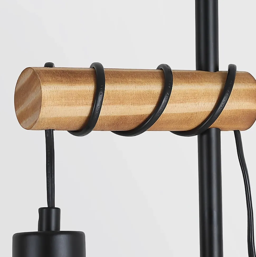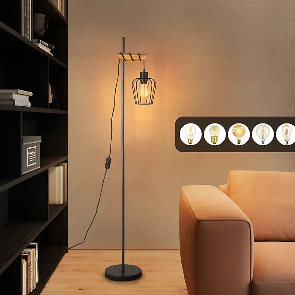 DESIGN : Ce lampadaire allie avec raffinement métal et bois flammé. Ses câbles noirs s’enroulent naturellement autour des poutres en bois et son abat-jour noir en forme de cage crée une ambiance rétro industrielle affirmée.DÉTAILS TECHNIQUES : Hauteur totale du lampadaire : 140 cm ; Diamètre de la base : 22 cm ; Hauteur de l’abat-jour : 15 cm ; Diamètre de l’abat-jour : 14 cm ; Longueur du câble : 310 cm ; Douille : E27 (max. 40 W) ; Remarque : ampoules non incluses.INSTALLATION FACILE : Ce lampadaire vintage est très facile à installer. Il suffit de suivre les instructions et de serrer la tige section par section. Aucun outil supplémentaire n’est nécessaire : une seule personne peut facilement réaliser l’assemblage, vous faisant gagner du temps et de l’énergie.Utilisations multiples : Ce lampadaire de style vintage est parfait pour un salon, une chambre, un bureau ou un coin, apportant chaleur et style à votre intérieur. Son design simple et généreux en fait un cadeau idéal pour la famille, les amis ou les collègues, pratique et élégant.Combinaisons-le de manière polyvalente : outre ce plafonnier, nous proposons d’autres luminaires de la même série, disponibles en différentes tailles et designs, qui s’intègrent facilement dans les chambres, les couloirs ou les salles à manger pour créer un éclairage harmonieux et uniforme.