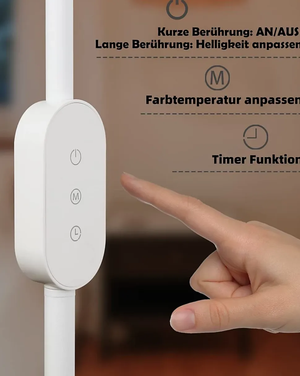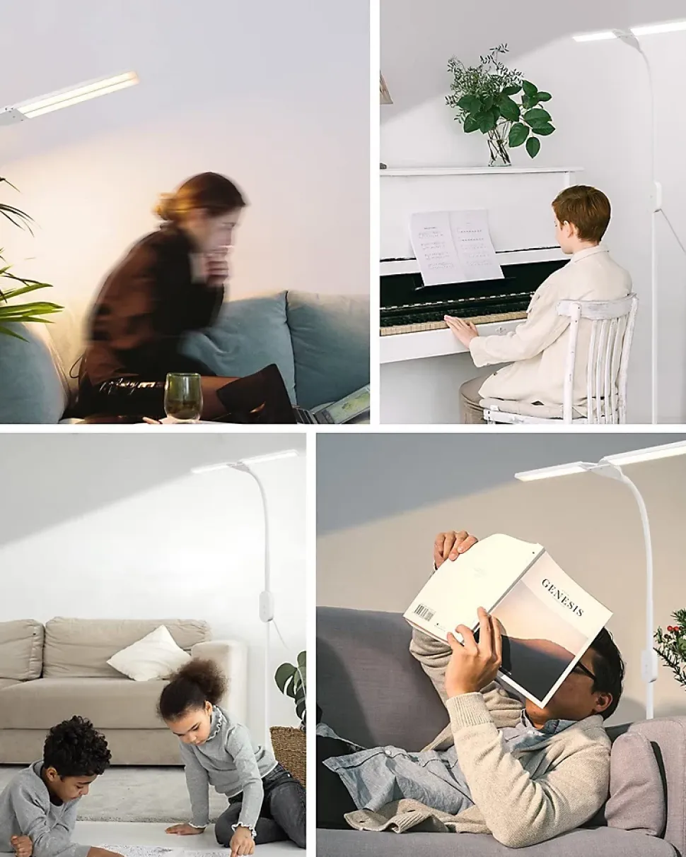 【Température de couleur et luminosité réglables】 Les lampadaires LED sont parfaits pour éclairer les lieux de travail modernes, les bureaux ou les lampes de lecture dans les chambres, les salons. La LED intégrée émet une lumière vive et les utilisateurs peuvent basculer entre différentes températures de couleur (3 000 K-5 000 K) et luminosité en touchant les boutons de fonction du panneau de commande pour s’adapter aux différents environnements.【Fonction minuterie et mémoire】 Le lampadaire dispose d’une fonction minuterie de 40 minutes. Appuyez longuement sur le bouton de la minuterie, le lampadaire clignote 2 fois, à ce moment la fonction minuterie est activée et s’éteindra automatiquement après 40 minutes. Le lampadaire de lecture dispose également d’une fonction de mémoire qui maintient automatiquement la dernière température de couleur et la luminosité réglées lorsque l’appareil est toujours sous tension.【Détails techniques】Puissance : 9 W ; Température de couleur : 3 000 K-5 000 K ; Luminosité : 15 % à 100 % ; Longueur du câble : 147 cm ; Matériau : fer et aluminium ; Mode d’alimentation : entrée AC100-240V50/60Hz, sortie DC5V ; L’angle de rotation maximum d’une seule tête de lampe : 90 degrés【Col flexible et LED haut de gamme】 Le col de cygne réglable à 360 ° donne à ce lampadaire moderne une flexibilité ultime pour diriger la lumière exactement là où elle est le plus nécessaire, vous offrant ainsi la lumière parfaite pour toutes vos activités. Le lampadaire avec LED de haute qualité émet sans scintillement et sans éblouissement, ce qui peut protéger efficacement vos yeux de l’inconfort et de la fatigue même après de longues heures de travail ou d’étude【Multi-applications】 Notre lampe de lecture est le cadeau idéal pour toute occasion. C’est certainement un cadeau spécial pour les enfants, les parents, les amoureux, les amis et les clients de la maison.