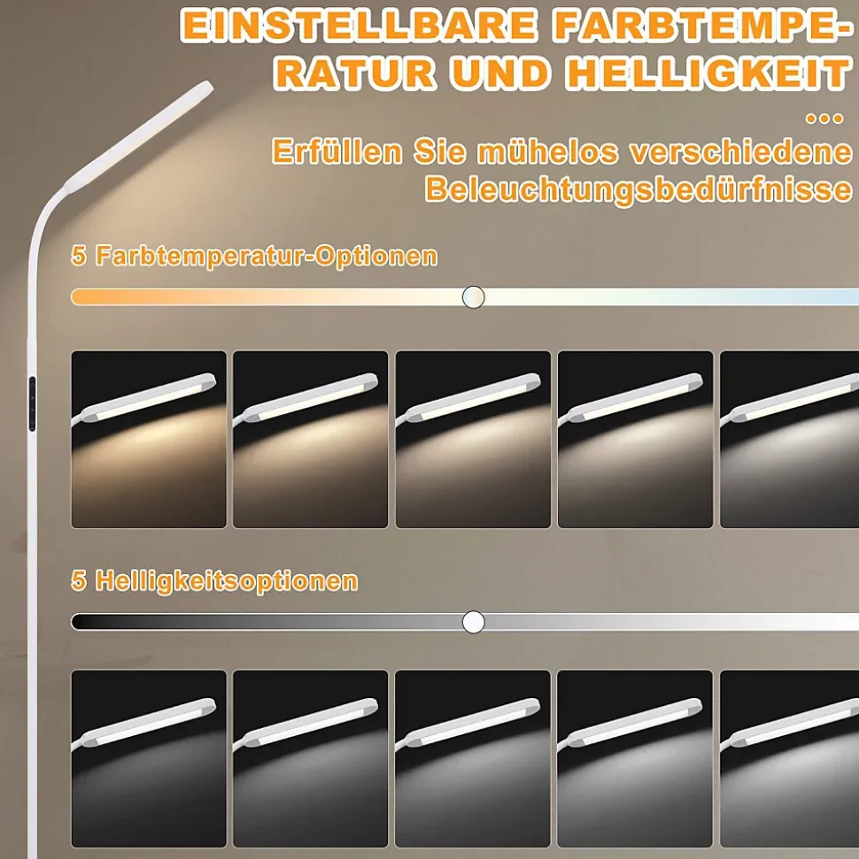 5 températures de couleur et 5 niveaux de luminosité – vous pouvez basculer entre les 5 températures de couleur et niveaux de luminosité avec une pression courte ou avec une pression longue pour une gradation continue (plage de température de couleur 3000k-6500k). Cela vous permet d’ajuster l’intensité lumineuse à vos besoins lorsque vous travaillez, lisez ou vous détendez et de créer un environnement d’éclairage agréable et idéalcol de cygne flexible à 360° – avec un col de cygne flexible et rotatif, la lumière peut être alignée avec précision, idéale pour une utilisation dans le salon, la chambre ou le bureau, parfaite pour lire et apprendrecontrôle intelligent et fonction minuterie – ce lampadaire led peut être contrôlé soit par le toucher, soit par une télécommande avec une portée allant jusqu’à 15 mètres. Cela vous permet d’utiliser le lampadaire confortablement depuis votre canapé ou votre lit sans avoir à vous lever. Ceci est particulièrement adapté si vous utilisez la lampe comme lampe de chevet ou comme lampe de lecture. Avec une minuterie de 60 minutes, la lampe s’éteint automatiquement – idéal pour une utilisation avant d’aller au litmontage facile et matériaux de haute qualité – fabriqué en fer et aluminium robustes, disponible en noir ou blanc ; le design minimaliste s’intègre dans n’importe quel intérieur et le montage se fait en quelques minutes seulement. Avec sa base plus large et plus lourde, ce lampadaire est très sûr pour les enfants et les animaux domestiques car il ne bascule pas facilement.mode veilleuse et protection des yeux – le lampadaire à intensité variable est équipé de led à faible consommation d’énergie, cri> 80, qui sont sans scintillement et sans éblouissement pour éviter la fatigue oculaire causée par le scintillement ou la lumière vive. Il dispose également d’un mode veilleuse, parfait pour les personnes âgées et les enfants à la maison pour les aider à mieux dormir