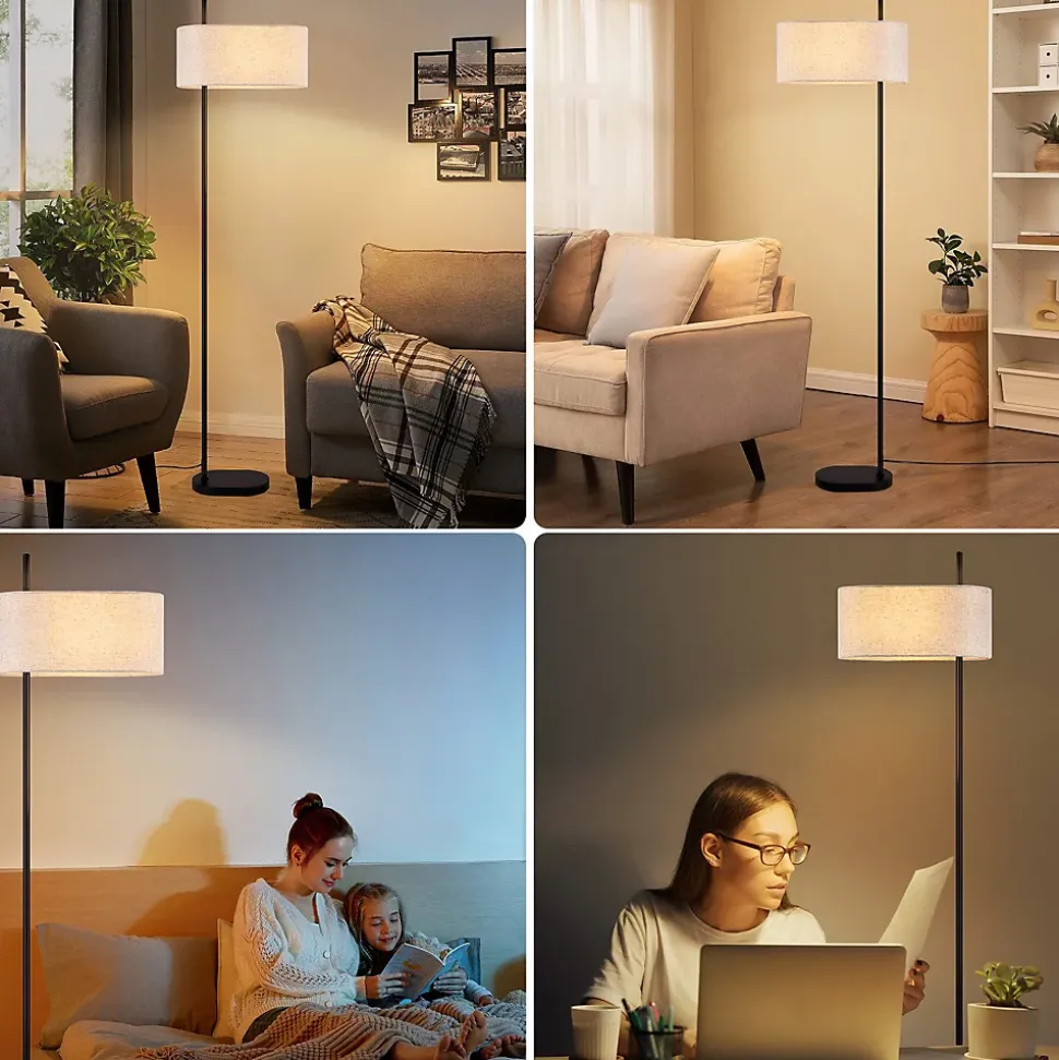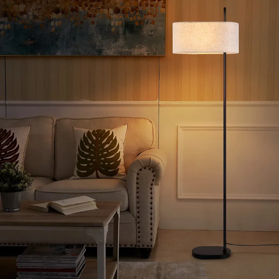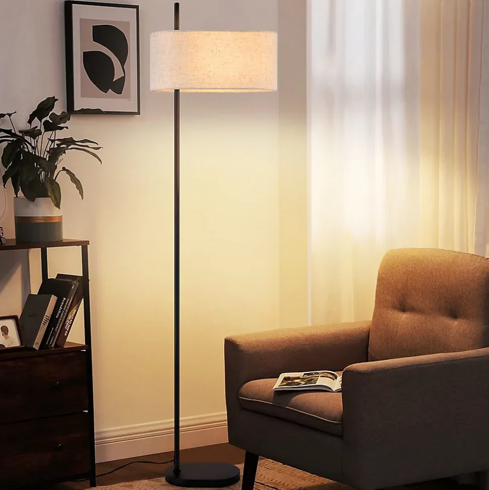 Design simple : le lampadaire de salon impressionne par sa finition de première classe et la combinaison astucieuse d’un pied en métal noir et d’un abat-jour en tissu. Le design classique et simple crée une atmosphère chaleureuse et confortable, parfaite pour différents styles de vieAbat-jour en tissu : l’abat-jour de ce lampadaire est fabriqué en tissu de haute qualité et soigneusement confectionné. Il peut filtrer efficacement l’éblouissement et émettre une lumière douce et confortable, offrant une excellente expérience de lecture. Dimensions : 40 cm x 18 cm. Ce lampadaire est idéal pour l’éclairage intérieurStable et durable : la base du lampadaire de style rétro est constituée d’une tige en métal noir robuste et offre donc un support particulièrement bon. La hauteur de la lampe est de 154 cm et la largeur est de 40 cm. En combinaison avec le pied épais, le lampadaire tient fermement et ne bascule pas – cela empêche de manière fiable les enfants ou les animaux domestiques de le renverser. Ce lampadaire robuste et attrayant est parfait pour tout espace industriel rétroLibre choix : le lampadaire de salon convient aux ampoules E27 (maximum 40W chacune). Cela vous permet de choisir une source de lumière en fonction de vos préférences de température de couleur et de luminosité. Cela vous donne plus de contrôle pendant l’utilisation et la flexibilité nécessaire pour répondre aux besoins et conditions spécifiques de votre espace afin de garantir un éclairage optimal et une expérience visuelle agréable (sans ampoules).Facile à utiliser : le lampadaire de style vintage est livré avec un manuel d’instructions et tout le matériel d’installation nécessaire. Vous pouvez facilement installer l’ampoule vous-même. L’installation est rapide et facile. Convient à diverses pièces telles que le salon, la chambre à coucher, le bureau, etc. Il peut être utilisé à la fois comme éclairage intérieur général et comme lampe de lecture