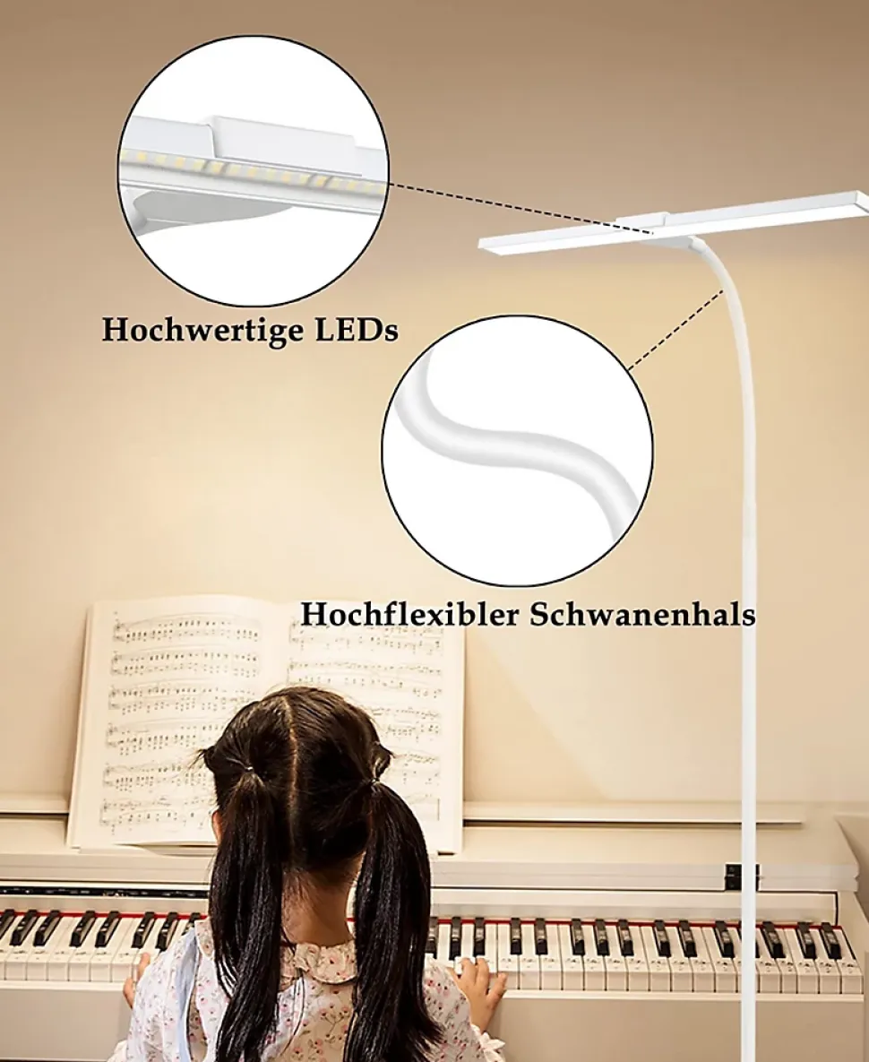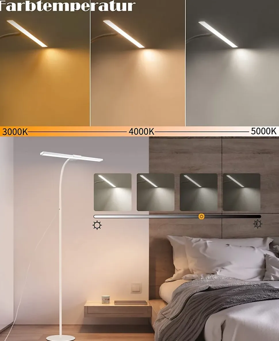Température de couleur et luminosité réglables : les lampadaires LED sont parfaits pour éclairer les lieux de travail modernes, les bureaux ou les lampes de lecture dans les chambres, les salons. La LED intégrée émet une lumière vive et les utilisateurs peuvent basculer entre différentes températures de couleur (3 000 K-5 000 K) et luminosité en touchant les boutons de fonction du panneau de commande pour s’adapter aux différents environnements. pour répondre à vos différents besoins d’éclairageFonction mémoire et minuterie : le lampadaire de lecture dispose d’une fonction mémoire qui conserve automatiquement la dernière température de couleur et la luminosité réglées lorsque l’appareil est toujours allumé. Le lampadaire dispose également d’une fonction minuterie de 40 minutes. Appuyez longuement sur le bouton de la minuterie, le lampadaire clignotera 2 fois, à ce moment la fonction de minuterie est activée et s’éteindra automatiquement après 40 minutesDétails techniques : Puissance : 10 W ; Température de couleur : 3 000 K-5 000 K ; Luminosité : 20 % à 100 % ; Longueur du câble : 147 cm ; Matériau : fer et aluminium ; Mode d’alimentation : entrée AC100-240V50/60Hz, sortie DC5V ; L’angle de rotation maximum d’une seule tête de lampe : 90 degrésCol flexible et LED haut de gamme : le col de cygne réglable à 360° donne à ce lampadaire moderne une flexibilité ultime pour diriger la lumière exactement là où elle est le plus nécessaire, vous offrant ainsi la lumière parfaite pour toutes vos activités. Lampadaire avec LED de haute qualité émet sans scintillement et sans éblouissement, ce qui protège efficacement vos yeux de l’inconfort et de la fatigue même après de longues heures de travail ou d’étudeService client : si vous avez des questions ou des problèmes, veuillez nous contacter. Nous essaierons de trouver une solution pour vous le plus rapidement possible