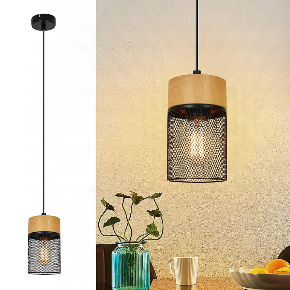 [Design généreux] Cette lampe à triple suspension de 172.5*46*10cm offre un éclairage étendu et ajoute un élément élégant et statement-making à votre pièce.[Style industriel rétro] Avec son motif de grain de bois et son design de grille pour les abat-jour, cette lampe apporte le charme du style industriel rétro à votre espace de vie.[Éclairage large] Grâce aux trois douilles E27, cette lampe fournit un éclairage uniforme et large, idéal pour les grandes pièces[Options de montage flexibles] Avec une longueur de suspension réglable, cette lampe offre une flexibilité maximale lors du montage. La taille de l’emballage est de 58,5*17*13cm et le poids de 1,83kg, ce qui rend l’installation confortable.[Polyvalente] Cette lampe à triple suspension est parfaite pour une utilisation dans différents scénarios, tels que le salon, la salle à manger, le bureau ou le couloir, et s’adapte à presque tous les styles d’intérieur. Livrée sans ampoules, vous pouvez choisir les ampoules qui vous conviennent en fonction de vos préférences.: