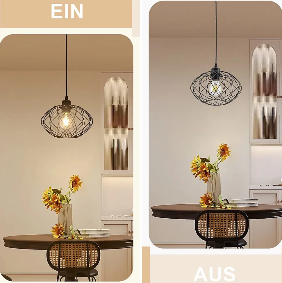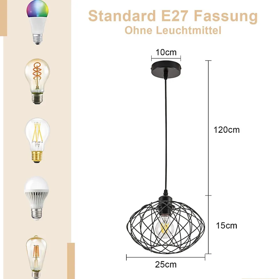 【Conception de lanterne ronde】 La suspension rétro a un design de lanterne ronde avec un style noir et simple qui intègre une atmosphère rétro. Ce design peut être facilement combiné avec différents styles de décoration pour rehausser la beauté globale de la pièce. La lampe suspendue au design abat-jour en métal noir du lustre émet une lumière douce et uniforme, créant une atmosphère chaleureuse et cosy.【Douille standard E27】 Cette lampe de salon suspendue est adaptée à la douille standard E27 et vous pouvez choisir votre source de lumière E27 préférée. REMARQUE : source de lumière non incluse. Qu’il s’agisse d’une lumière chaude et agréable ou d’une lumière vive et froide, vous êtes bien équipé avec cette lampe suspendue industrielle.【Matériau métallique de haute qualité】 La lampe suspendue noire est fabriquée dans un matériau métallique de haute qualité, ce qui garantit non seulement la stabilité structurelle de la lampe suspendue de la lampe de cuisine, mais lui confère également durabilité et beauté. La texture du matériau métallique présente un goût unique.【Applicable à plusieurs scènes】 Cette suspension vintage peut être parfaitement intégrée dans le salon, la salle à manger, la chambre, le couloir ou le bureau. Avec son design simple mais élégant, cette lampe suspendue de salle de bain peut ajouter une touche de brillance à n’importe quelle pièce.【Réglage flexible de la hauteur】 L’un des points forts de cette lampe suspendue de couloir est sa conception réglable en longueur. Lors de l’installation, vous pouvez régler la hauteur idéale pour répondre à différents besoins d’espace et d’éclairage, ajoutant ainsi une touche personnelle à votre espace de vie. Remarque : la personnalisation après l’installation n’est pas recommandée.