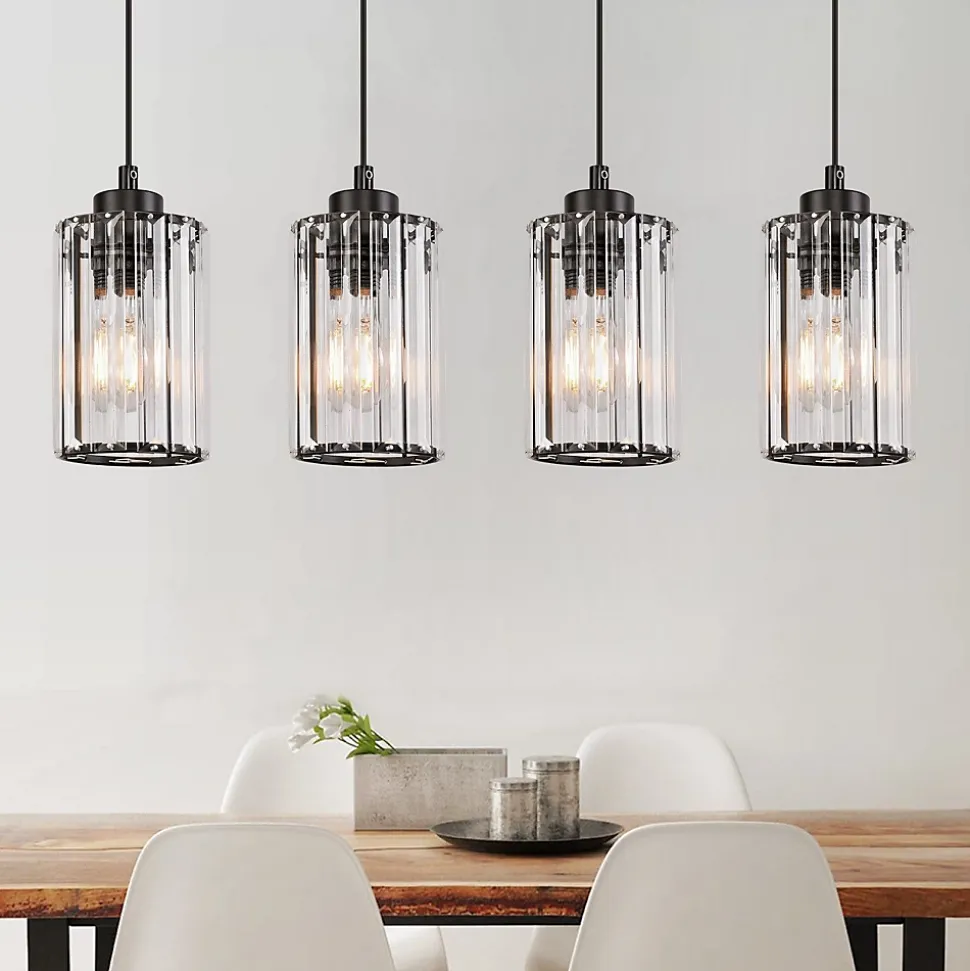 **Design** Cette suspension contemporaine met en valeur la simplicité et le style moderne avec sa plaque de plafond noire et son câble noir. L’abat-jour en verre transparent assure une diffusion de lumière cristalline, apportant une beauté élégante à la pièce.**Détails techniques** La longueur de la lampe peut être ajustée de 0 à 120 cm pour s’adapter à vos préférences et besoins d’espace. La lampe est compatible avec les ampoules E27 (non fournies), vous permettant de personnaliser votre éclairage.**Matériaux** La suspension est composée de cristaux taillés et polis, ainsi que de fer durable. Les cristaux améliorent la réfraction de la lumière, rendant l’éclairage plus doux et stratifié, tout en conférant une esthétique noble et minimaliste. Le disque en fer supérieur assure une structure stable et durable.**Scènes applicables** Ce lustre convient à une large gamme d’espaces intérieurs, y compris la salle à manger, la cuisine, le bar, le salon, le bureau, la chambre et les locaux commerciaux. Son design élégant s’intègre parfaitement dans différents styles d’intérieur et répond à divers besoins d’éclairage.**Service client** Retour ou remplacement gratuit dans les 30 jours. Réparation gratuite pour les problèmes survenant entre 1 et 2 ans. Contactez-nous pour tout problème, même après 2 ans. Nous ferons tout notre possible pour vous aider.