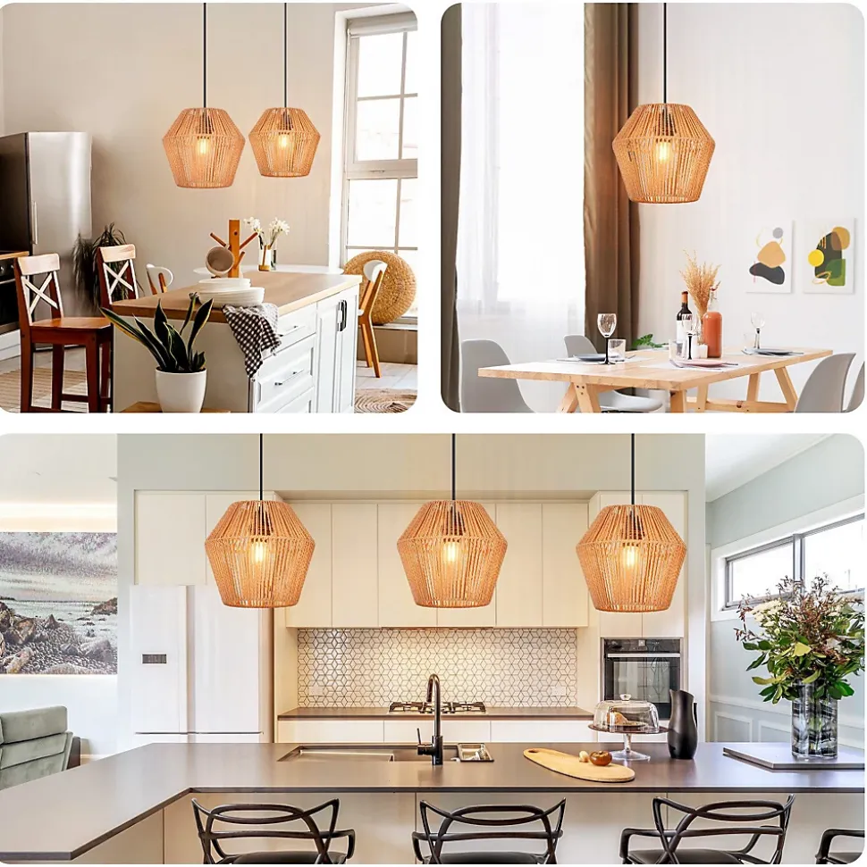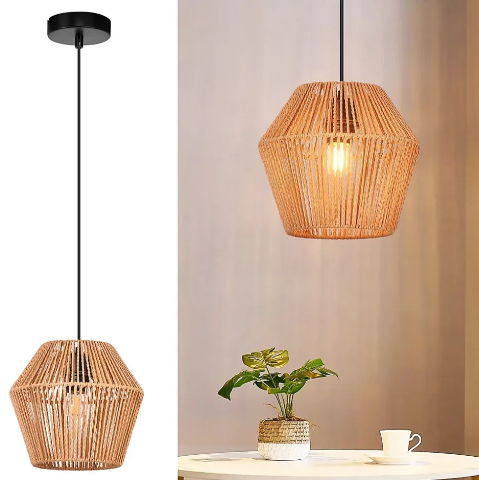 Lampe à suspension moderne en rotin tressé à la main : Cette lampe présente un design géométrique en losanges dans un style bohème vintage, parfaite pour une décoration uniqueHauteur réglable : avec un système de suspension de 150 cm, la longueur de la lampe peut être ajustée selon les besoins pour trouver l’endroit parfaitCompatible avec diverses ampoules E27 : cette suspension prend en charge différents types d’ampoules, telles que les ampoules blanc chaud, blanc neutre, blanc froid, RVB et à intensité variable. (Veuillez noter : la lampe ne contient pas d’ampoule, elle doit être achetée séparément.)Puissance maximale de 40 W : cette suspension vintage est sûre et économe en énergie, fournissant suffisamment de lumière pour vos piècesPOLYVALENT : Cette lampe suspendue s’intègre parfaitement dans le salon, la chambre, la salle à manger, la cuisine et peut également être utilisée comme lampe de lit, lampe de salon ou lampe de cuisine