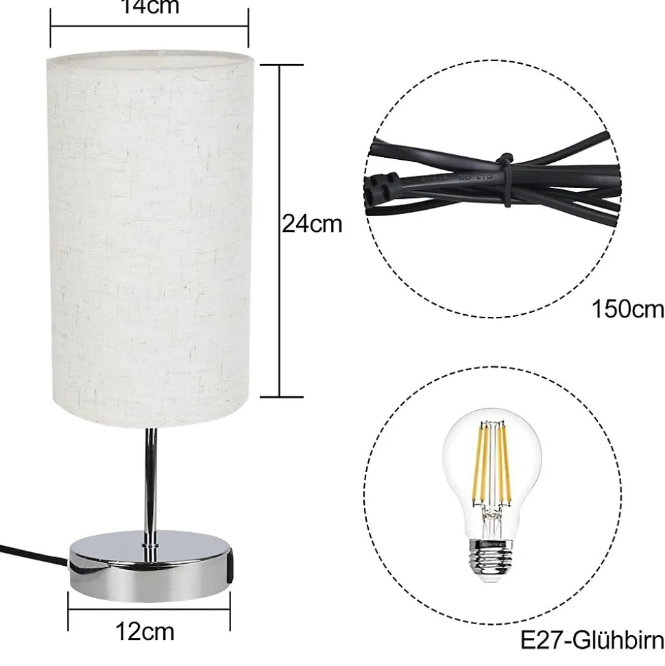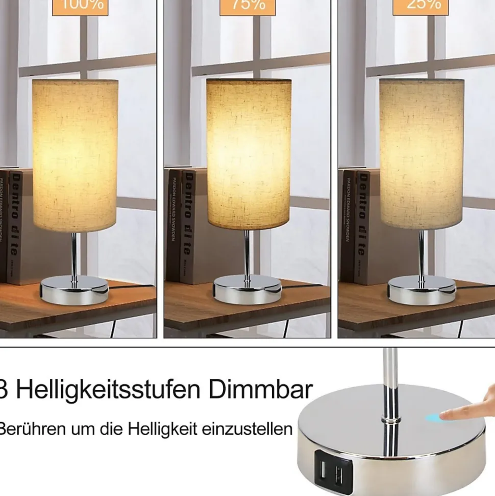 Détails techniques : Dimensions : 14*14*37 CM, diamètre du socle : 12 CM, douille E27 (max. 40 W), 1 flamme, 230 V, matière : métal/tissu, câble 1,5 m, avec ficheFonction tactile : la lampe de chevet rechargeable peut être réglée en luminosité de 25 %, 75 % à 100 %. L’abat-jour en tissu offre une lumière douce, uniforme et non éblouissanteLampe de chevet avec 2 ports USB : La lampe de table rechargeable dispose de deux ports USB (DC 5,0 V 1 A) pour charger les téléphones portables, tablettes, liseuses eBook. Convient pour lit, bureau, table à manger, table de travail, etc.Culot standard E27 : Vous pouvez également le remplacer par un autre type d’ampoule E27, comme par exemple : B. ampoules à intensité variable, ampoules froides, ampoules rétro, etc.SERVICE CLIENT : Nos lampes LED de sont conçues pour vous fournir un éclairage durable et fiable. Nous nous efforçons de vous offrir une expérience d’achat de première classe