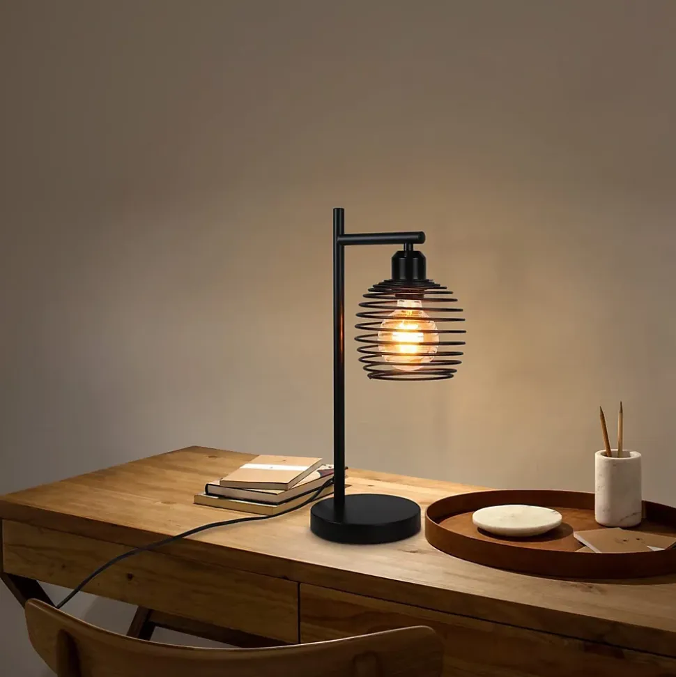 Finition : Le corps de la lampe est noir. La forme de l’abat-jour est un design de plume spécial, plus design que les autres lampes de table. Si vous utilisez une lampe au look rétro ou rustique avec des filaments de carbone, la lampe aura un effet décoratif particulier. Par exemple : G80, G95, ST64.Détails techniques : Diamètre du pied de lampe : 15CM. Douille : E27(Max. 40w) ; Nombre de flammes : 1 flg ; Tension : 230V ; Matériau : métal ; Ampoule incluse : non ; Longueur du câble : 1.6m ; Avec fiche : oui ; Autres : Ampoule remplaçableDouille standard E27 : cette lampe de chevet est dotée d’une douille E27 et convient à une ampoule E27 normale de 60 watts maximum. La possibilité de faire varier l’intensité lumineuse dépend de l’ampoule. Veuillez noter que cette lampe de table industrielle est livrée sans ampoule.Facile à installer et à utiliser : Cette lampe de bureau rétro avec fiche dispose d’un simple interrupteur à bascule sur le câble. L’installation de la lampe est très simple, même s’il n’y a pas de mode d’emploi, l’installation peut se faire toute seule.Domaine d’application : Cette lampe de table facile à installer a un aspect parfait, peut être installée n’importe où et est très décorative, par exemple dans le salon, la chambre à coucher, le bureau, le bureau et d’autres endroits.GARANTIE:2 ans.