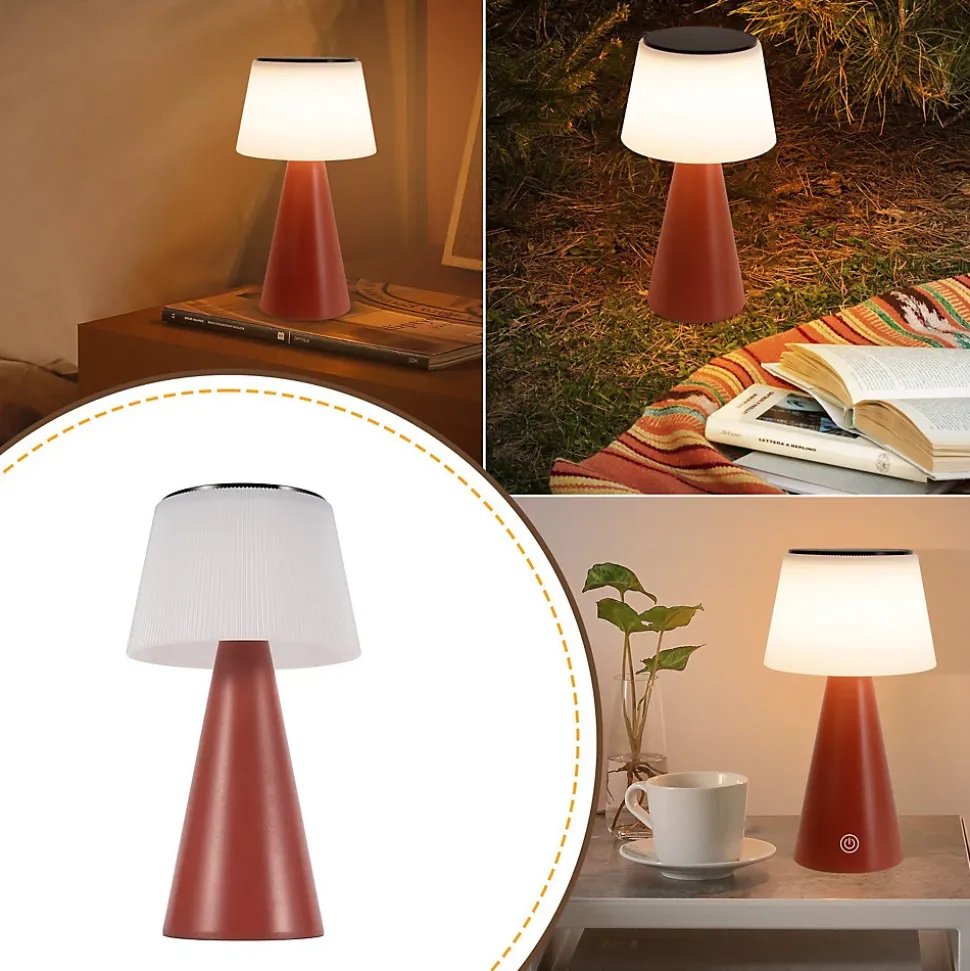 Nettlife lampe de table à batterie solaire lampe de chevet led sans fil 3600mha rechargeable tactile dimmable lampe rouge