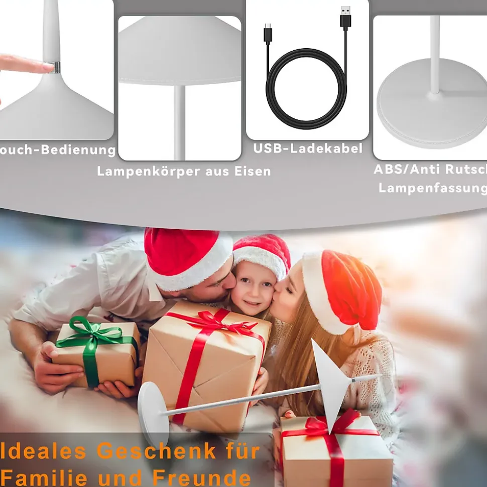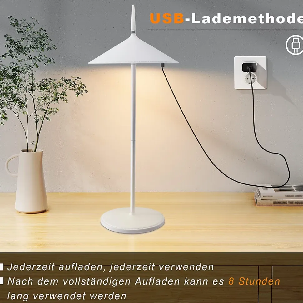 Nettlife lampe de table à piles, lampe de chevet sans fil led 1800mha rechargeable tactile dimmable lampe de table blanche ip44