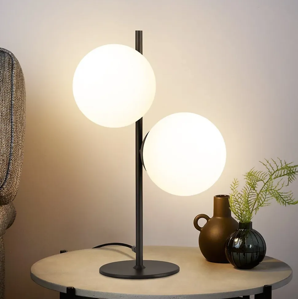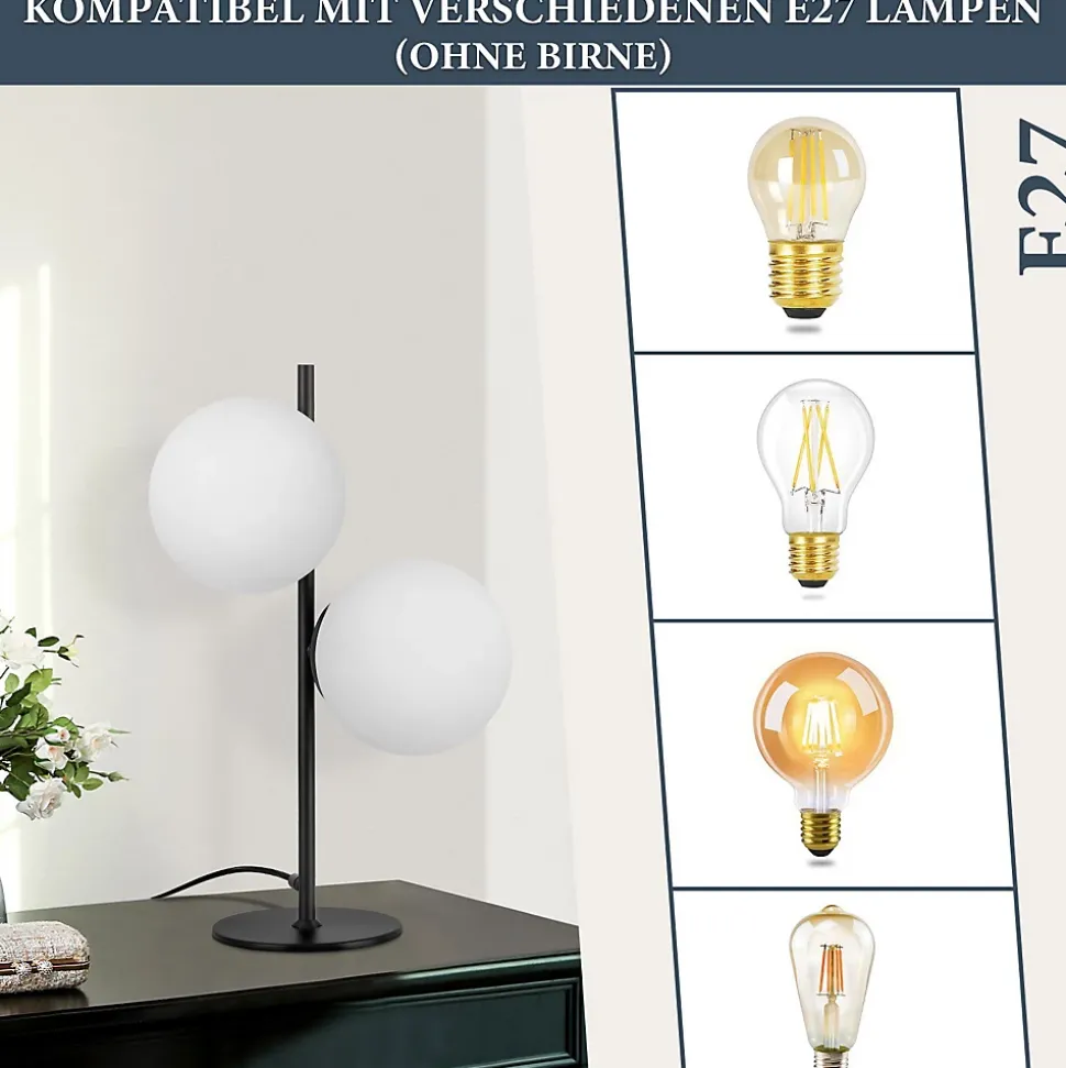 Matériau : notre lampe de table est en métal, la tige en métal doré et l’abat-jour en verre opale sont combinés, donnant à votre espace de vie une touche élégante et moderne. Avec une base antidérapante noire et un fonctionnement pratique de l’interrupteur à bouton, il est facile à utiliser. Il convient aux tables de chevet, bureaux, chambres, salons, chambres d’enfantsConception de l’abat-jour en verre : l’abat-jour en verre blanc laiteux assure une répartition douce et uniforme de la lumière avec une transmission lumineuse élevée, créant une atmosphère lumineuse chaleureuse et confortable. Le design unique de l’abat-jour ajoute une touche élégante et confortable à votre pièce. L’abat-jour en verre est facile à nettoyer et présente une conception amovible pour un remplacement facileDouille standard E27 : notre lampe de chevet utilise une douille filetée standard E27, qui offre une compatibilité élevée. Vous pouvez choisir librement différents types de lampes pour répondre à vos besoins d’éclairage individuels et créer différentes ambiances (puissance maximale 25WX2). Qu’il s’agisse d’une lumière vive ou d’un éclairage d’ambiance doux, cette lampe de table vous permet de l’ajuster librement pour obtenir l’effet souhaitéDétails techniques : Dimensions de la lampe de table : 45 x 21,5 cm, diamètre de l’abat-jour en verre : 15 cm, diamètre du pied : 15 cm. Equipé d’un câble d’alimentation de 150 cm de long pouvant être allumé et éteint à l’aide de l’interrupteur présent sur le câble (sans ampoule)Service client : si vous avez des questions sur nos lampes, veuillez nous contacter à tout moment. Nous vous répondrons dans les 24 heures. Si vous avez d’autres questions, veuillez cliquer sur « Contacter le vendeur » pour nous contacter. Nous ferons de notre mieux pour résoudre votre problème
