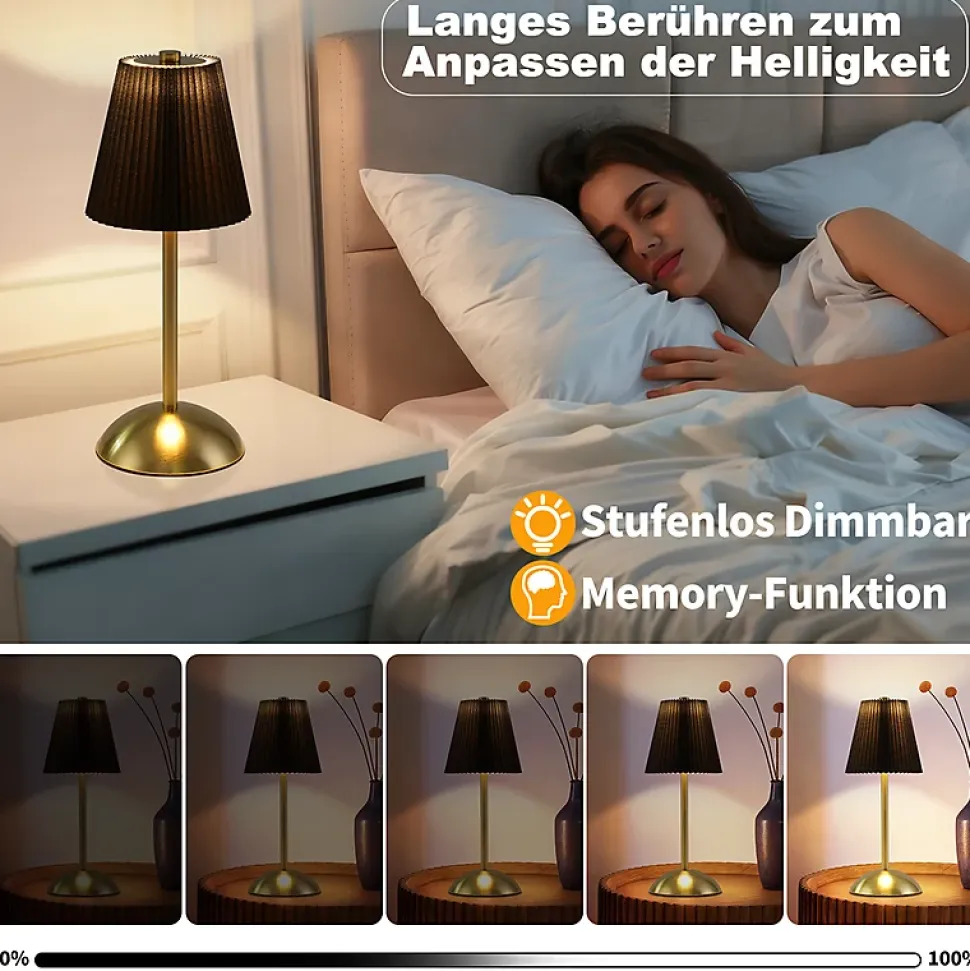 Design Moderne : Cette lampe de table se distingue par son design moderne et minimaliste avec un élégant abat-jour en tissu texturé qui s’intègre harmonieusement à différents styles d’intérieur. L’abat-jour est disponible en cinq couleurs : noir, vert, blanc, bleu-gris et rouge orangé. Que vous souhaitiez créer une atmosphère de bureau calme, un salon confortable ou plus de luminosité dans une chambre d’enfant animée, cette lampe répond à vos besoins esthétiques.Commande Tactile : Cette lampe de table sans fil dispose d’un interrupteur tactile innovant. Une simple touche permet de l’allumer, éliminant l’opération fastidieuse des interrupteurs traditionnels. Une pression longue permet un réglage continu de la luminosité – d’une lumière d’ambiance douce à une lumière vive – couvrant ainsi divers besoins d’éclairage.Longue Autonomie et Charge Efficace : Cette lampe de table rechargeable est équipée d’une puissante batterie de 2000 mAh (3,7 V) qui permet jusqu’à 7-8 heures d’éclairage à pleine charge, couvrant les besoins quotidiens. Que ce soit sur le bureau ou la table de chevet, les recharges fréquentes ne sont pas nécessaires. Grâce à la charge efficace de 2W, la lampe est entièrement chargée en seulement 3-4 heures.Polyvalente et Portable : La lampe mesure seulement 11,5 x 11,5 x 30 cm. Grâce à sa taille compacte, elle est peu encombrante, facile à transporter et à ranger. Elle convient à divers endroits tels que les petits espaces comme les bureaux ou tables de chevet, mais aussi les chambres, salons, bureaux, entrées, salles de lecture, chambres d’enfants, salles à manger, bibliothèques, hôtels, bars et locations de vacances.Durable et Fiable : Le corps de la lampe est en fer robuste et durable, tandis que l’abat-jour est fabriqué à partir d’une combinaison d’acrylique et de textile.