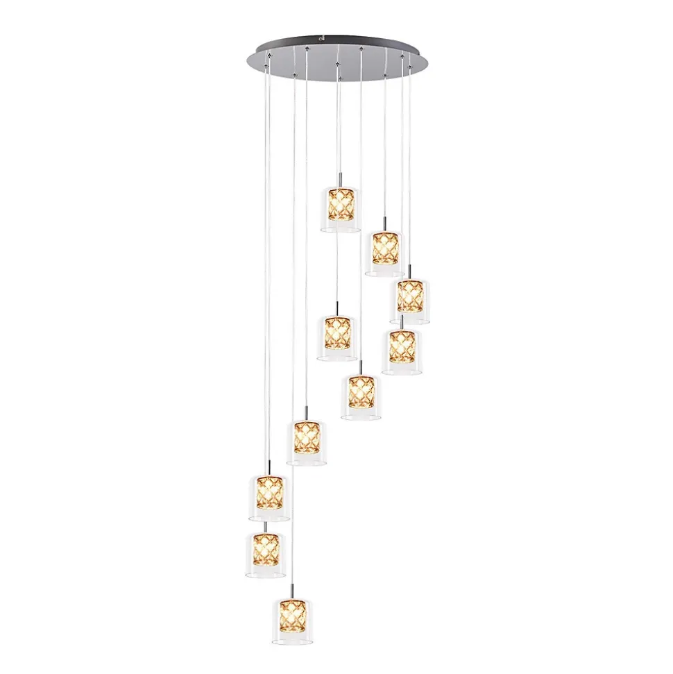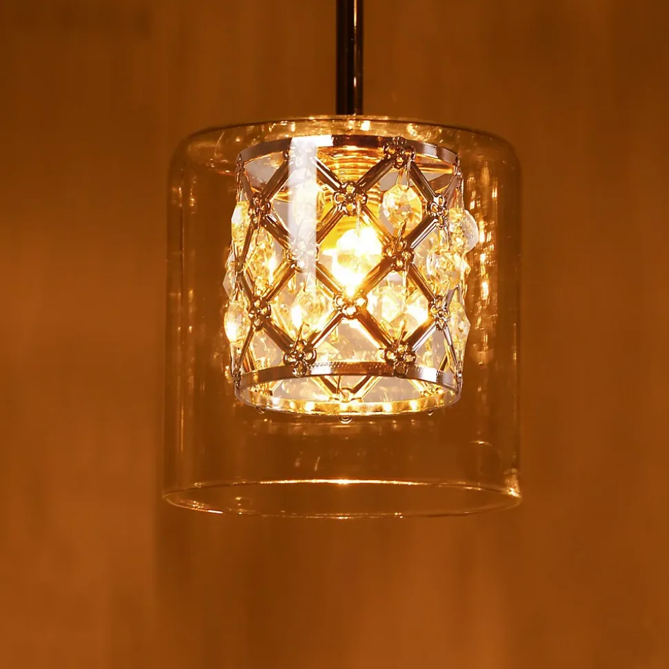 **Conception unique** Cette suspension présente un abat-jour en verre transparent incrusté de cristaux étincelants. L’interaction des cristaux et des sources lumineuses crée un effet visuel magnifique, offrant un décor élégant et une atmosphère luxueuse.**Douille G9** Équipée d’une douille G9 (ampoule non incluse), vous pouvez choisir la source lumineuse appropriée (LED, halogène, etc.) pour obtenir différents effets d’éclairage et intensités lumineuses, adaptés à vos besoins.**Hauteur réglable** La longueur de la suspension peut être facilement ajustée jusqu’à 230 cm, pour s’adapter à différents plafonds et styles de décoration, garantissant une harmonie parfaite avec l’espace.**Matériaux de haute qualité** Fabriquée avec du métal, du verre et du cristal, cette suspension combine un design moderne et une touche luxueuse. Le métal offre un support stable, le verre un design élégant et les cristaux une brillance magnifique.**Large applicabilité** Convient à divers espaces comme salon, salle à manger, chambre, couloir, cage d’escalier, ainsi qu’à des lieux commerciaux comme hôtels, galeries d’art et salles de banquet. Elle crée une atmosphère chaleureuse et ajoute une touche romantique et luxueuse.