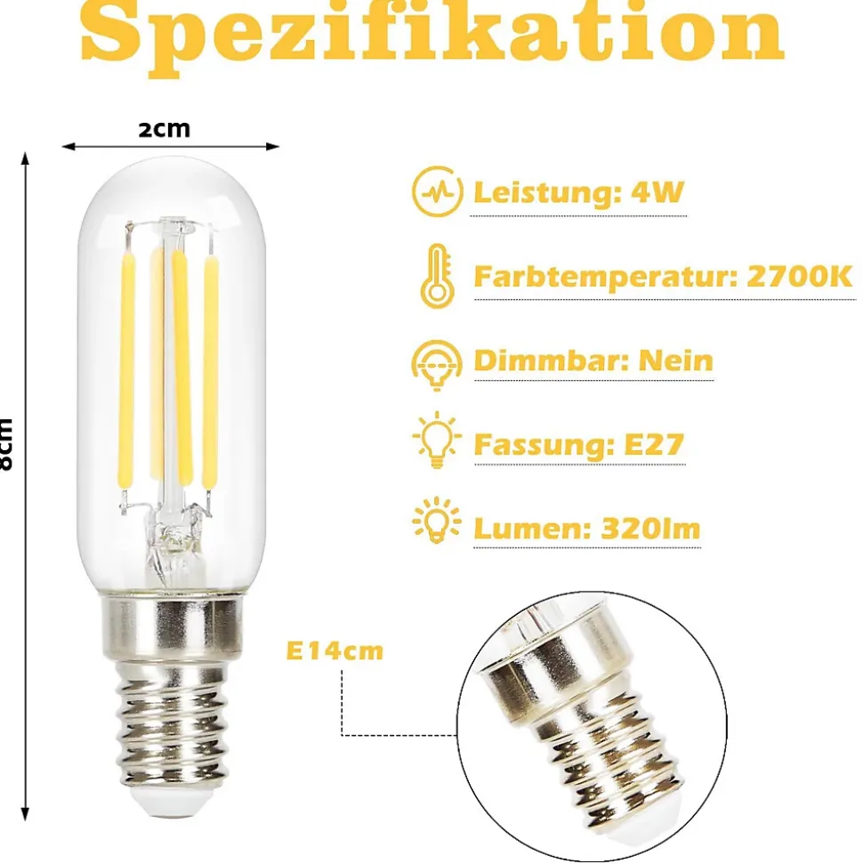 ÉCONOMIE D’ÉNERGIE: Cette ampoule vintage Edison e14 a un effet économe en énergie, remplace la lampe à incandescence conventionnelle de 40 W, une durée de vie moyenne de 20 000 heures.Couleur brillante, présentation naturelle : De vraies couleurs, belle présentation ! Ampoule LED E27 avec super éclairage 4W, le rendu des couleurs va jusqu’à 80 ou plus, l’ampoule est inoffensive pour la peau et les yeux.Lumière blanche chaude 2 700 K : le design du boîtier transparent améliore considérablement la transmission de la lumière des ampoules LED E27, offrant un effet d’éclairage plus uniforme et plus doux.LARGEMENT UTILISÉ: Idéal pour le salon, la chambre à coucher, le couloir, la maison, l’hôtel, le café, le restaurant, la galerie d’art, le magasin, la pièce, etc. Ces superbes ampoules créent une atmosphère agréable qui vous fait sentir détendu et confortable.SERVICE CLIENT : Nos ampoules LED sont conçues pour vous fournir un éclairage durable et fiable. Nous nous efforçons de vous offrir une expérience d’achat de première classe.