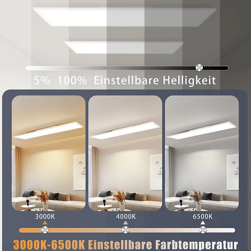 Matériel : Ce plafonnier LED rectangulaire est équipé d’un cadre en aluminium blanc et d’un socle en fer, offrant une diffusion lumineuse large et agréable dans la pièce. Avec son design moderne, la lampe donne l’impression qu’elle flotte au plafondIntensité variable et contrôle de la température de couleur : le panneau LED prend en charge la gradation, la température de couleur peut être ajustée entre 3 000 K et 6 500 K. La luminosité peut être réglée de 5% à 100%. Grâce à la fonction mémoire, le dernier mode de commutation est automatiquement enregistré. En même temps, la température de couleur peut être rapidement modifiée à l’aide de l’interrupteur mural.Économie d’énergie : ce plafonnier plat à LED est plus efficace que les ampoules à incandescence traditionnelles et équivaut à une ampoule à incandescence de 200 watts, réduisant ainsi la consommation d’énergie tout en fournissant une lumière plus brillante. Leur durée de vie peut atteindre 20 000 heures, ce qui réduit la fréquence de remplacement des lampesLarge application : sa conception ultra fine et sa grande zone d’éclairage rendent ce plafonnier idéal pour les bureaux, ainsi que pour les salons, les cuisines, les chambres, les centres commerciaux, les restaurants, les salles de conférence, les couloirs, les escaliers, les balcons et les garages.Conseils d’installation : en raison de la grande taille du produit, l’installation peut être un peu difficile. Lors de l’installation, veillez à ne pas saisir les côtés courts pour éviter la déformation des côtés longs. Si vous avez des questions ou des problèmes lors de l’installation, n’hésitez pas à nous contacter à tout moment