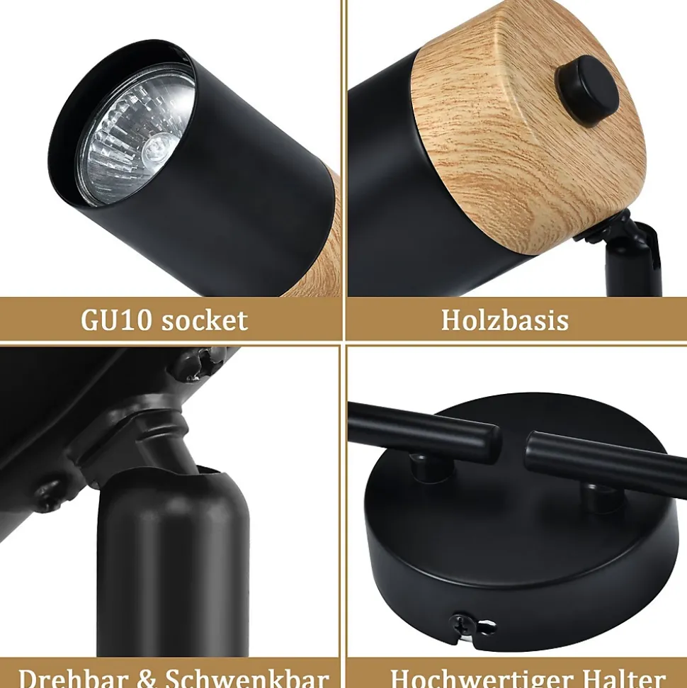 【Design rétro】 Le plafonnier vintage du salon est fait de bois et de métal, ce qui fournit non seulement une fonction d’éclairage, mais ajoute également de la beauté au salon avec son look unique et son atmosphère chaleureuse. Il convient à différents styles d’intérieur et constitue le choix idéal pour votre maison.【Rotatif et pivotant】 Le spot de plafond noir peut ajuster librement la tête de la lampe, et les utilisateurs peuvent diriger la lumière dans différentes directions en fonction de leurs besoins et répondre aux besoins d’éclairage de différentes pièces.【Douille GU10】 Les spots conviennent à diverses lampes GU10, qui offrent une variété d’options d’énergie et de couleur, telles que la lumière blanche, la lumière chaude, la lumière neutre, RVB, afin que vous puissiez choisir l’effet d’éclairage le plus approprié en fonction des différents environnements. et les besoins.【Facile à installer】 Le plafonnier en bois est simple et pratique, facile à installer et à utiliser. Le spot de plafond à 3 lampes est équipé d’un matériel de montage pratique et d’un mode d’emploi, et les utilisateurs n’ont besoin que de quelques étapes simples pour fixer le spot au mur ou au plafond.【Applications larges】 Le plafonnier en métal noir convient à diverses scènes intérieures, telles que le salon, la chambre, le restaurant, le bureau, etc. Ils peuvent servir d’éclairage principal ou auxiliaire, créant une atmosphère de vie confortable et chaleureuse.