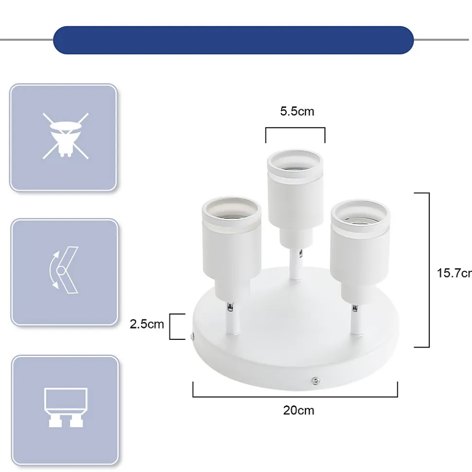 NETTLIFE Plafonnier Blanc moderne : 3 spots de plafond orientables en métal, plafonnier GU10, pour chambre, sans ampoule