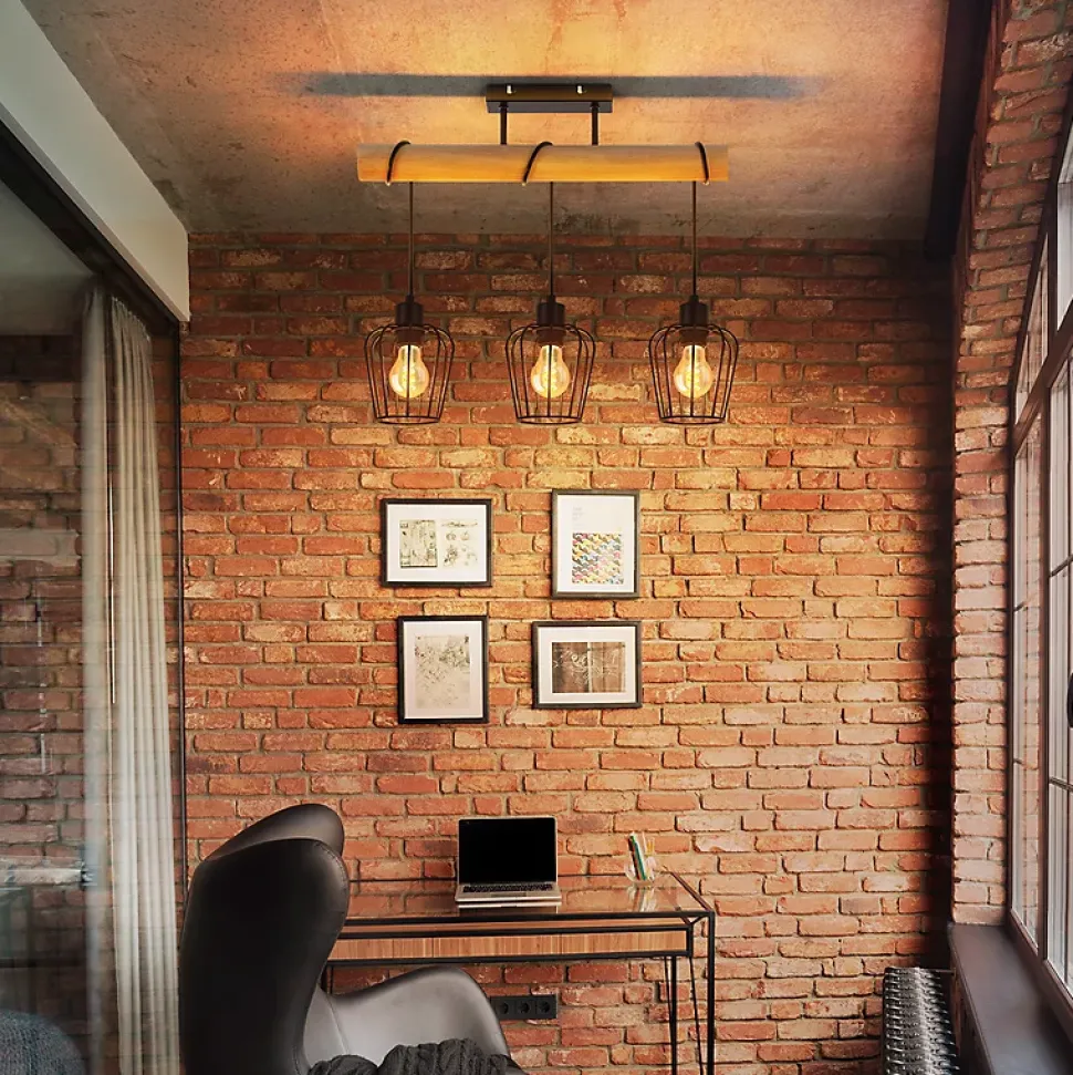 DESIGN INDUSTRIEL : Ce plafonnier allie métal noir et poutres en bois naturel pour un style industriel unique. Il est non seulement élégant, mais garantit également durabilité et stabilité pour une utilisation durable. Il s’intègre parfaitement à tous les intérieurs.Matériaux de haute qualité : la poutre est en bois massif, l’abat-jour et la rosace sont en métal. Grâce à une fabrication soignée, nous veillons à ce que cette lampe de cuisine ne présente aucun bord tranchant. De plus, son pied en métal noir est peint par pulvérisation, inoxydable et facile à installer et à nettoyer.Besoins personnalisés : ce plafonnier de salon est équipé de trois douilles E27 (d’une puissance maximale de 25 W chacune) et peut être utilisé avec des ampoules de différentes luminosités et températures de couleur (par exemple, des ampoules LED blanc chaud ou des ampoules Edison rétro) pour créer une ambiance lumineuse personnalisée.Nombreuses applications : ce plafonnier s’intègre parfaitement dans les chambres, salons, salles à manger, bureaux, salles d’étude, couloirs, cuisines, balcons, restaurants, cafés, bars, hôtels et autres locaux.Combinaisons multiples : outre ce plafonnier, nous proposons d’autres luminaires de la même série, disponibles en différentes tailles et designs, qui s’intègrent facilement dans les chambres, couloirs ou salles à manger pour créer un éclairage harmonieux et uniforme.