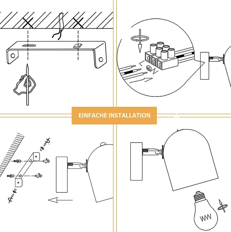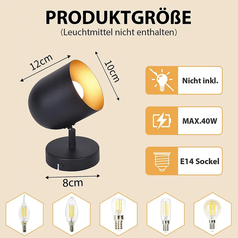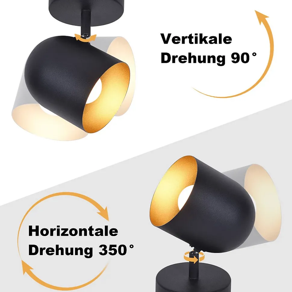 NETTLIFE Plafonnier E14 spot de plafond or noir lampe de couloir industrielle vintage