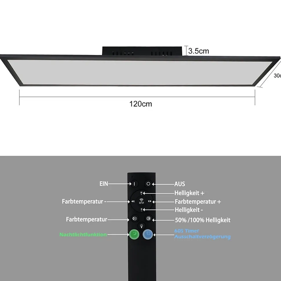 【Matériel】 Le plafonnier LED rectangulaire avec un cadre en aluminium noir et un châssis en fer diffuse la lumière largement et agréablement dans la pièce. Grâce à sa construction moderne, la lampe crée une impression flottante au plafond【Température de couleur dimmable et réglable】 Le panneau LED est dimmable. La température de couleur peut varier de 3 000 K à 6 500 K. Luminosité réglable de 5% à 100%. Avec fonction mémoire : enregistre automatiquement le dernier mode d’allumage. La température de couleur peut également être activée sur les interrupteurs muraux pour commuter rapidement【Économie d’énergie】Avec une puissance lumineuse de 3840 lm, le panneau LED remplace une lampe à incandescence de 200 W. Cela signifie que la lampe de cuisine LED avec une faible consommation d’énergie de 48 W peut économiser plus d’énergie et réduire les coûts d’électricité. Sa durée de vie est de 30 000 heures, ce qui réduit la fréquence de remplacement des lampes.【Conception ultra plate et large application】 Le boîtier du panneau lumineux est ultra-mince et ne mesure que 1 cm. Grâce à son design très plat et à son éclairage sur une grande surface, ce plafonnier est idéal pour les bureaux, mais aussi pour les salons, cuisines, chambres, grands magasins, salles à manger, salles de réunion, couloirs, escaliers, vérandas, garages, etc.【Notes d’installation】 En raison des dimensions plus grandes du produit, l’installation peut être un peu plus difficile. Veuillez noter que lors de l’installation, veillez à ne pas saisir les côtés courts, car cela pourrait plier les côtés longs par des forces extérieures. Si vous rencontrez des problèmes lors de l’installation, n’hésitez pas à nous contacter !