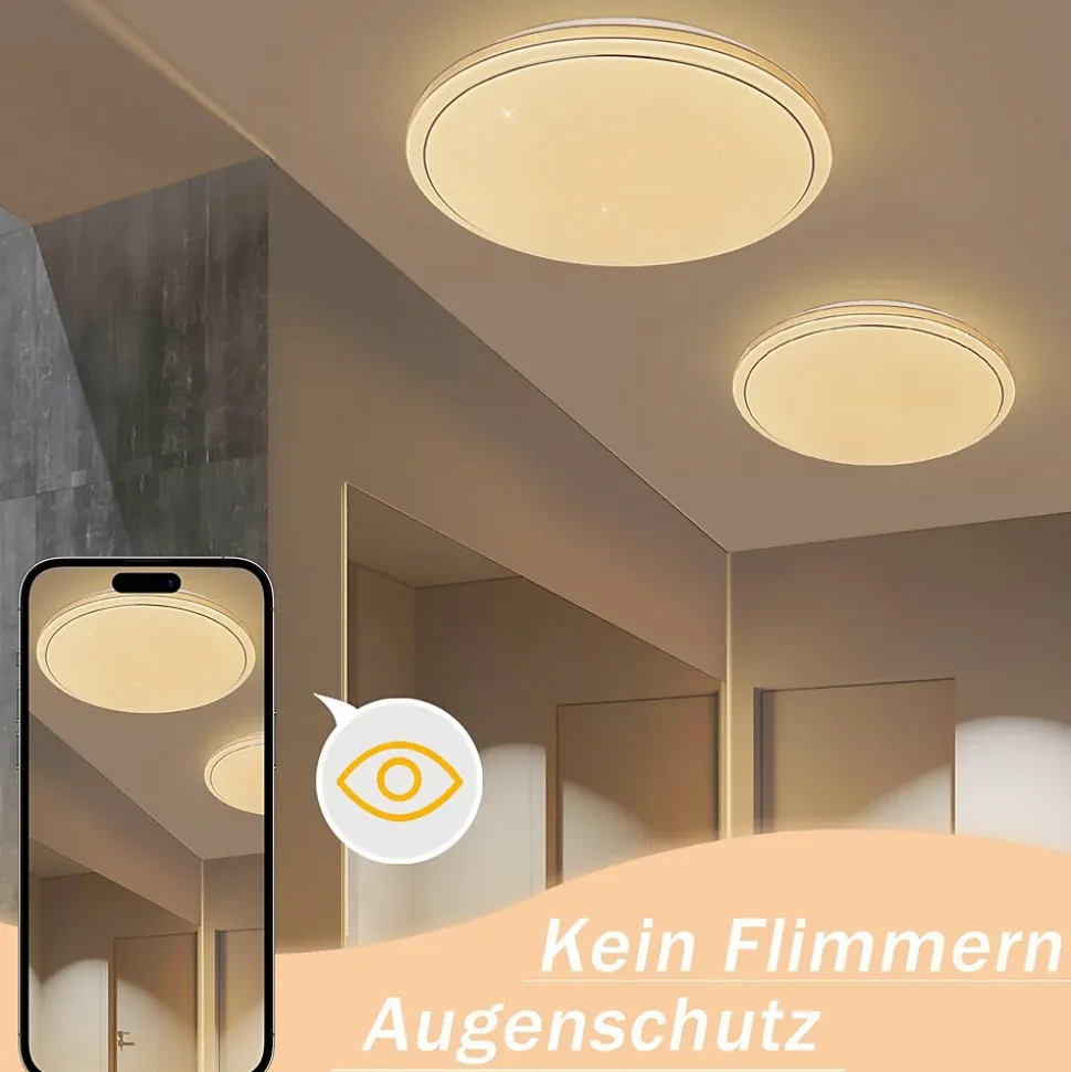 Design ciel étoilé : le plafonnier a un abat-jour rempli de nombreuses petites lumières LED. Chaque lampe LED représente une étoile. Ces lumières étoilées sont réparties à différentes positions dans l’abat-jour pour créer un effet de ciel étoilé dynamique et réaliste.Lumière blanc chaud 3000 K : Derrière les caches, des LED puissantes fournissent une lumière agréable et brillante qui remplit l’environnement de chaleur. Il est idéal pour réduire la fatigue et créer une atmosphère calme. Veuillez noter que la lampe n’est pas dimmable.Détails techniques : dimensions : 27 x 27 x 6 cm ; tension : 230 V ; puissance : 12 W ; dimmable : non ; classe de protection : IP20 ; matériau : métal et plastique ; les ampoules LED sont solidement installées, grâce à la technologie LED, une bonne efficacité énergétique peut être garantie. La durée de vie est de 25 000 heures.Scénarios d’application : ce plafonnier décoratif moderne convient non seulement au couloir, à la cuisine, à la salle à manger, au salon, mais également aux pièces de loisirs telles que les chambres à coucher, les chambres d’enfants ou le bureau. Ainsi, chaque pièce est complétée par un accessoire lumineux très spécial.Service client : nous offrons une garantie d’achat de 2 ans pour l’éclairage, le produit a été récemment révisé et modernisé et il existe des cas où les valeurs d’efficacité énergétique ne correspondent pas à la page détaillée. Si vous recevez le produit et rencontrez des problèmes, veuillez contacter notre service client.
