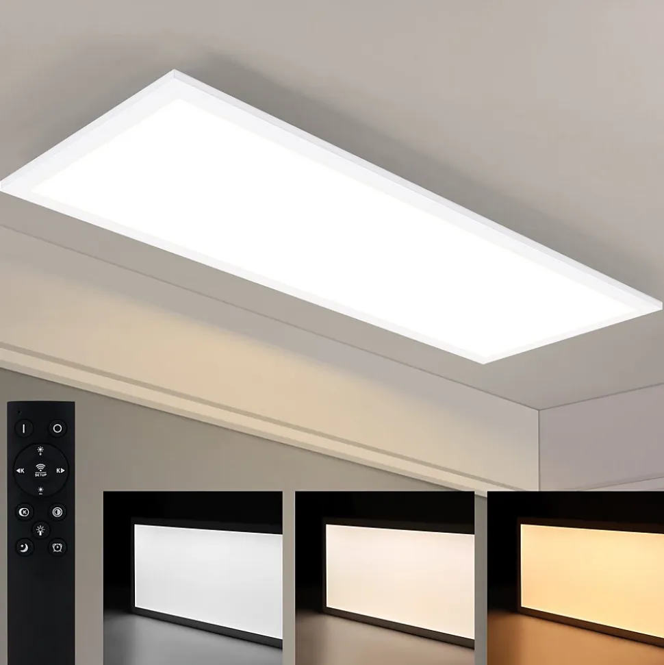 Matériau : le plafonnier LED rectangulaire avec cadre en aluminium blanc et châssis en fer diffuse la lumière largement et agréablement dans la pièce. Grâce à sa construction moderne, la lampe donne une impression flottante au plafondTempérature de couleur variable et réglable : le panneau LED est dimmable. La température de couleur peut varier de 3 000 K à 6 500 K. Luminosité réglable de 5 % à 100 %. Avec fonction mémoire : enregistre automatiquement le dernier mode de mise sous tension. La température de couleur peut également être commutée rapidement via l’interrupteur muralÉconomie d’énergie : avec une puissance lumineuse de 3120 lm, le panneau LED remplace une ampoule à incandescence de 200 W. Cela signifie que la lampe de cuisine LED avec une faible consommation d’énergie de 39 W peut économiser plus d’énergie et réduire les coûts d’électricité. Il a une longue durée de vie de 30 000 heures, ce qui réduit la fréquence de remplacement des lampesDesign ultra plat et large application : le boîtier du panneau lumineux est ultra fin et ne mesure que 1 cm. Grâce à son design très plat et à son grand éclairage, ce plafonnier convient parfaitement aux bureaux, mais aussi au salon, à la cuisine, à la chambre, au grand magasin, à la salle à manger, à la salle de réunion, au couloir, aux escaliers, au porche, au garage, etc.Instructions d’installation : en raison des dimensions plus grandes du produit, l’installation peut être légèrement plus difficile. Veuillez noter que lors de l’installation, veillez à ne pas saisir les côtés courts car cela pourrait plier les côtés longs par des forces externes. Si vous rencontrez des problèmes lors de l’installation, n’hésitez pas à nous contacter !