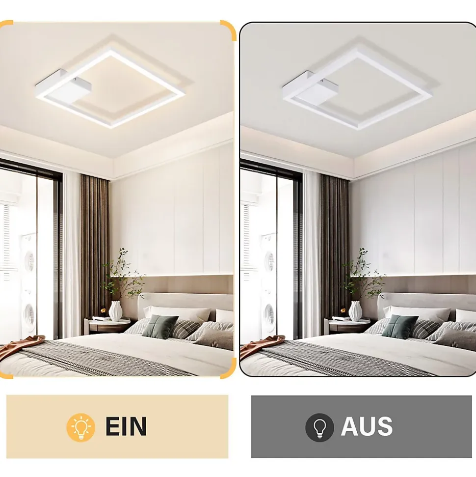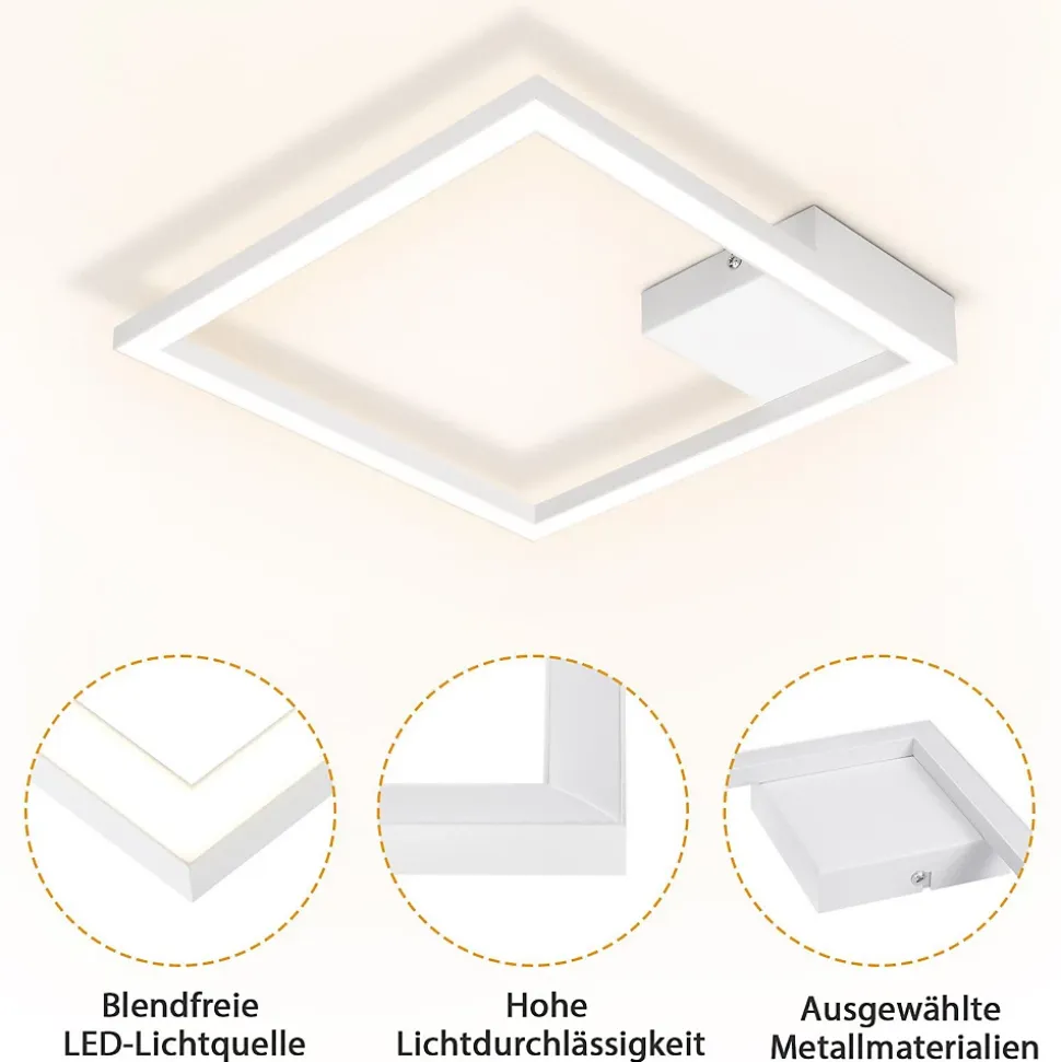 Design moderne : ce plafonnier LED au design moderne présente un cadre rectangulaire qui correspond parfaitement au style de mobilier moderne et fournit un éclairage pratique pour votre vie quotidienne.Fonction d’applique murale : ce plafonnier LED est conçu de manière unique et peut être utilisé comme applique murale. Il s’adapte avec flexibilité aux différentes méthodes d’installation et donne au mur une touche moderne tout en offrant des effets de lumière agréables.Température de couleur : température de couleur chaude de 3 000 K, lumière douce, proche de la lumière naturelle, soulage la fatigue oculaire, adaptée à une utilisation à long terme, créant une atmosphère de vie confortableInformations sur le produit : la taille est de 29,4 x 29,4 x 3,8 cm, la puissance est de 12 W, le matériau est en métal et en plastique, ce qui garantit durabilité et beauté et convient à divers intérieurs.Champ d’application : convient aux décorations intérieures telles que les salons, les chambres, les restaurants, les salles d’étude, les couloirs, etc. L’apparence moderne et l’éclairage agréable en font un choix de décoration idéal.